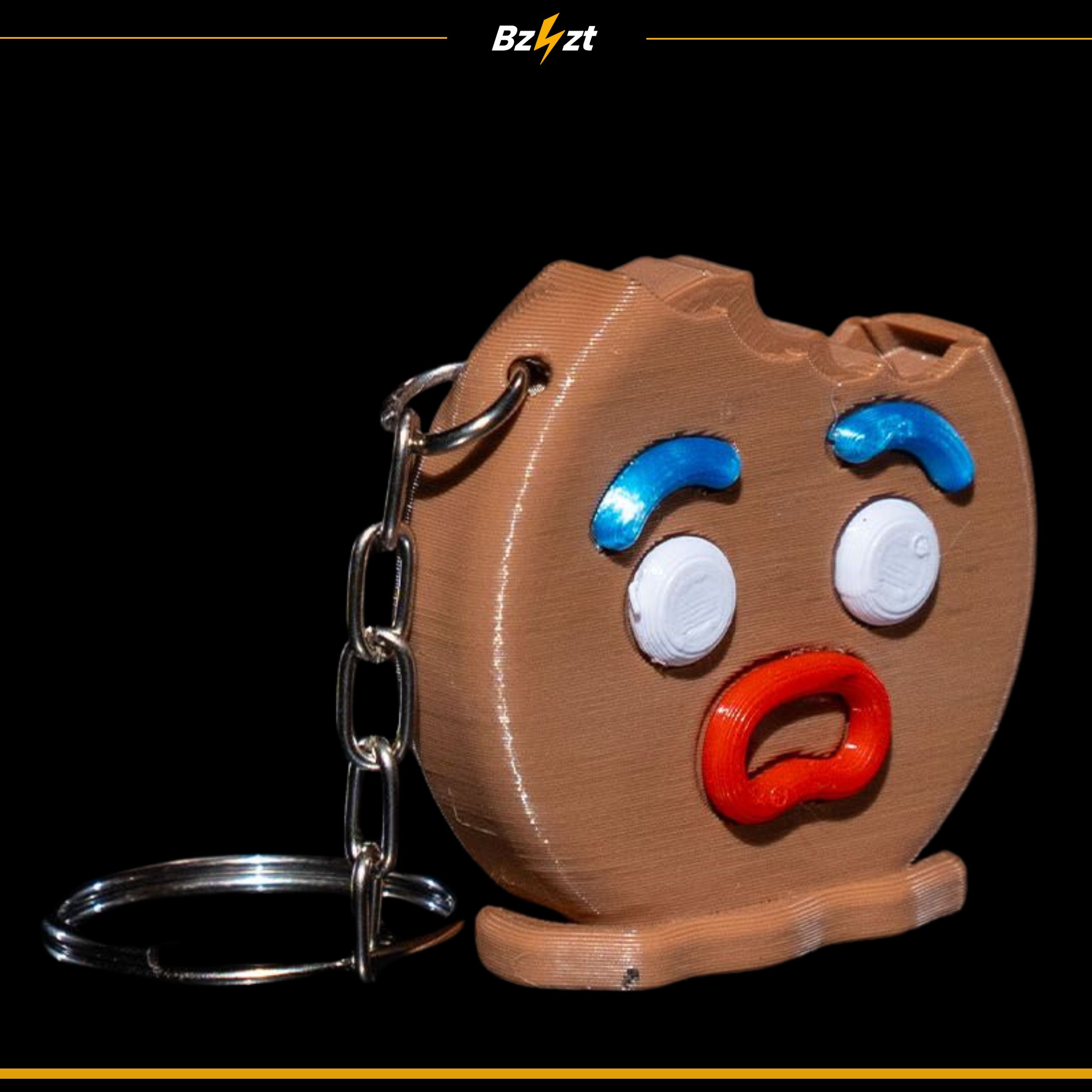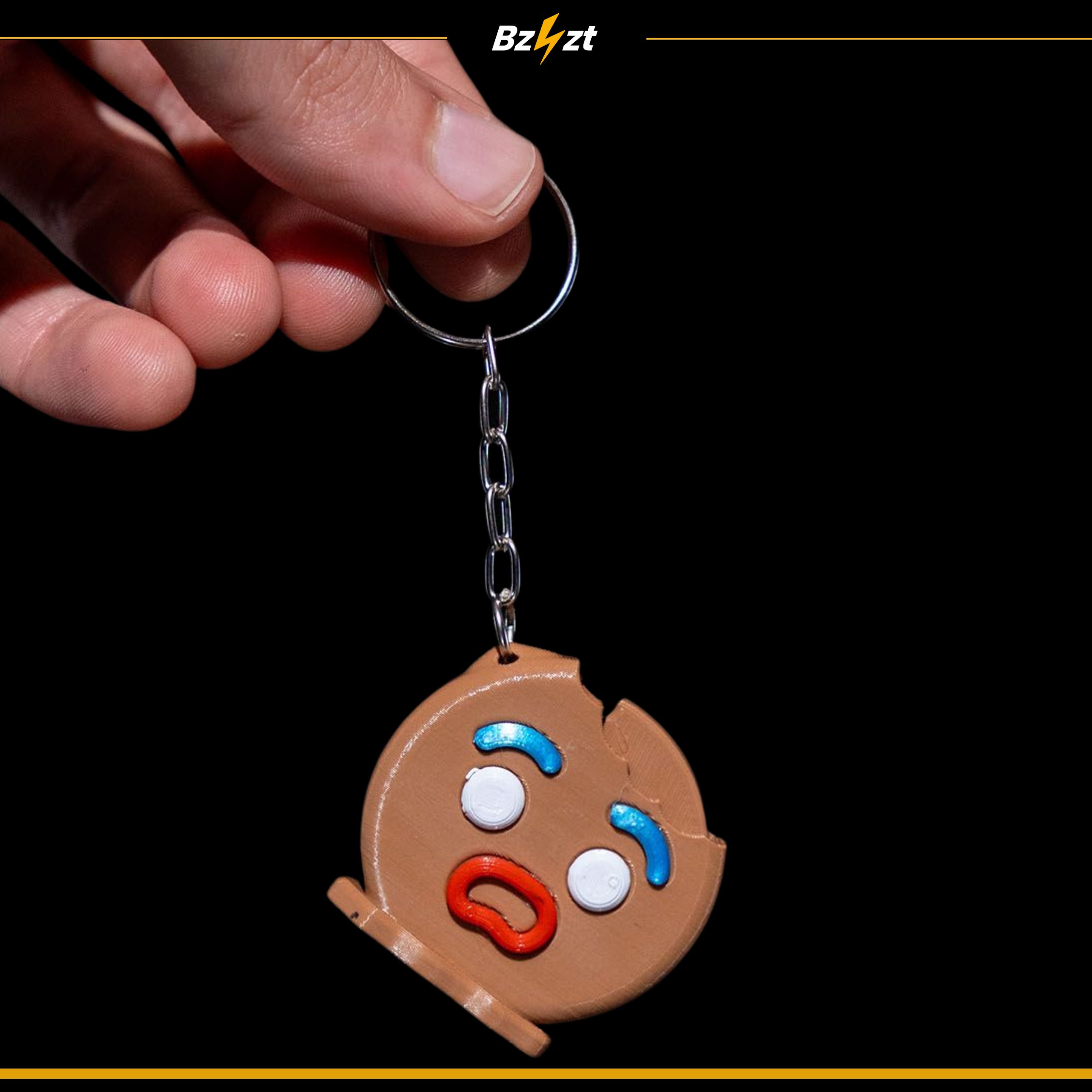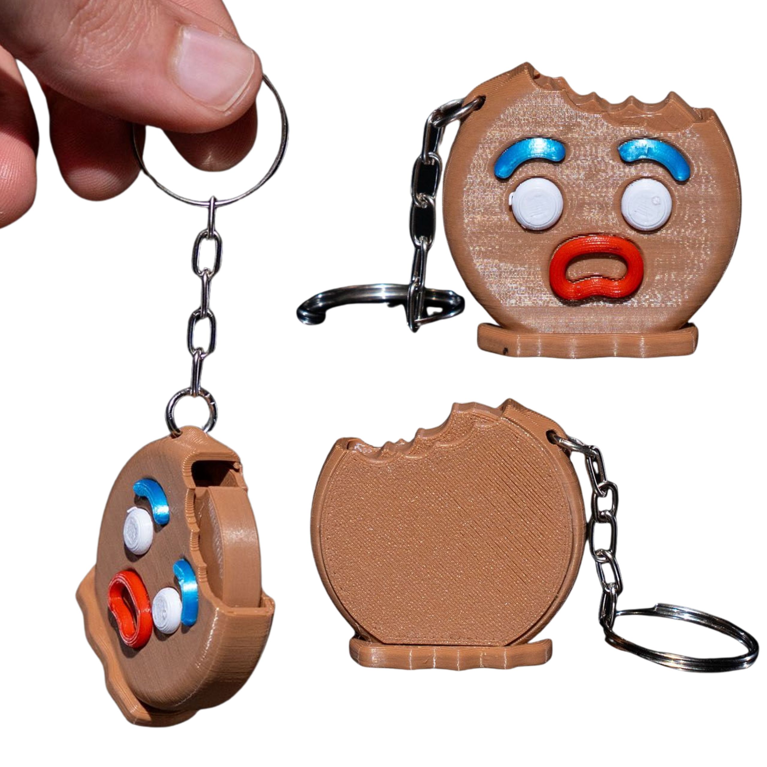 Oryginalny brelok w kształcie ciasteczka z miną i ugryzieniem. Świetna zawieszka halloweenowa z kółeczkiem do kluczy. W pakietach duże oszczędności.