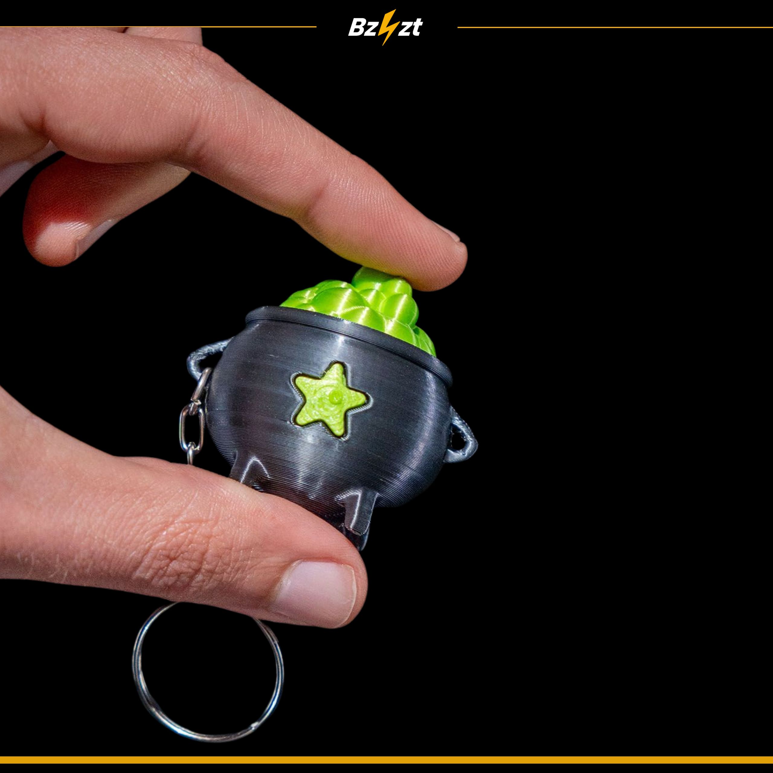 Wyjątkowy brelok halloweenowy w kształcie czarnego kociołka z zieloną miksturą. Gotowy do użycia – w zestawie solidne kółeczko do kluczy. Idealny gadżet na imprezy, eventy i jako oryginalny prezent.