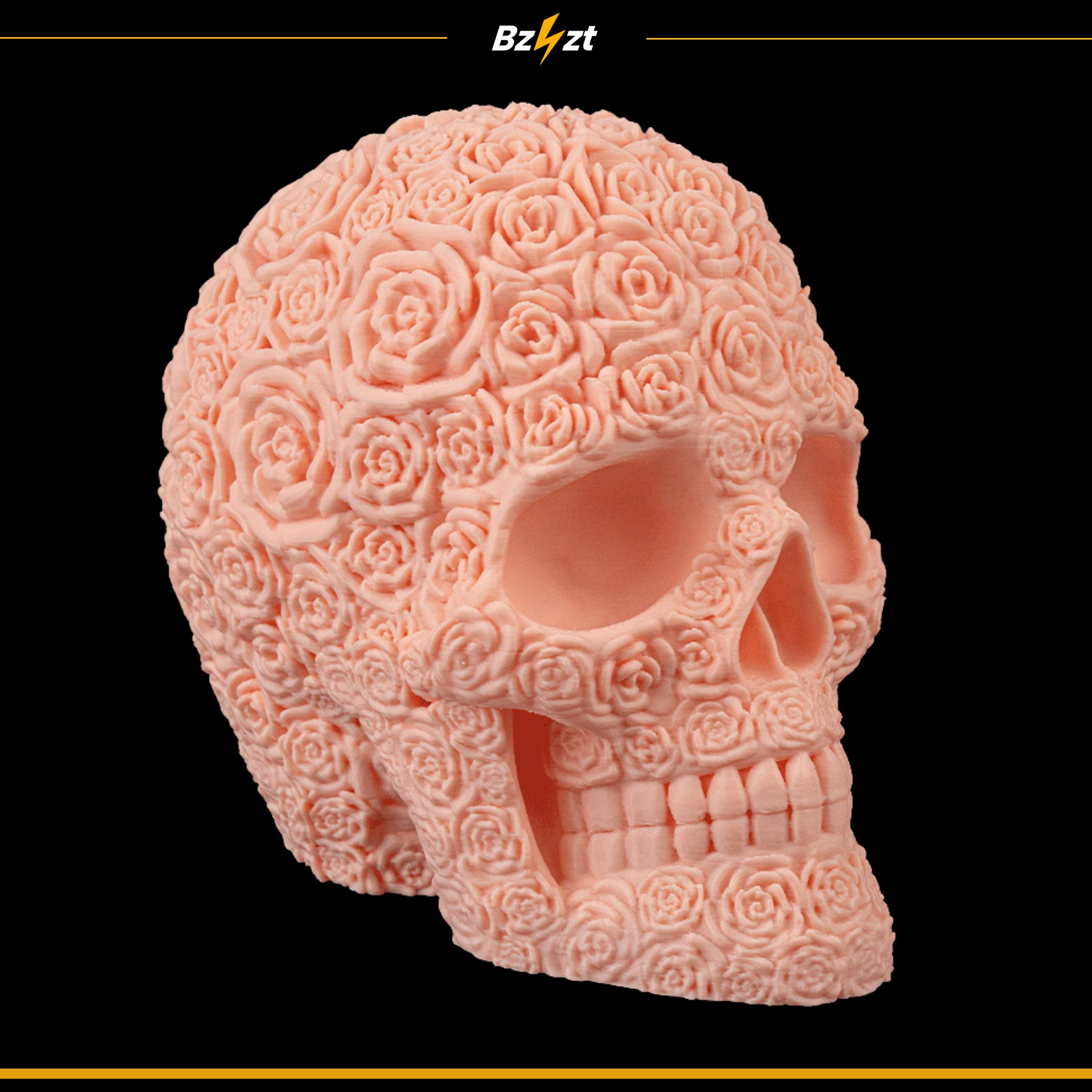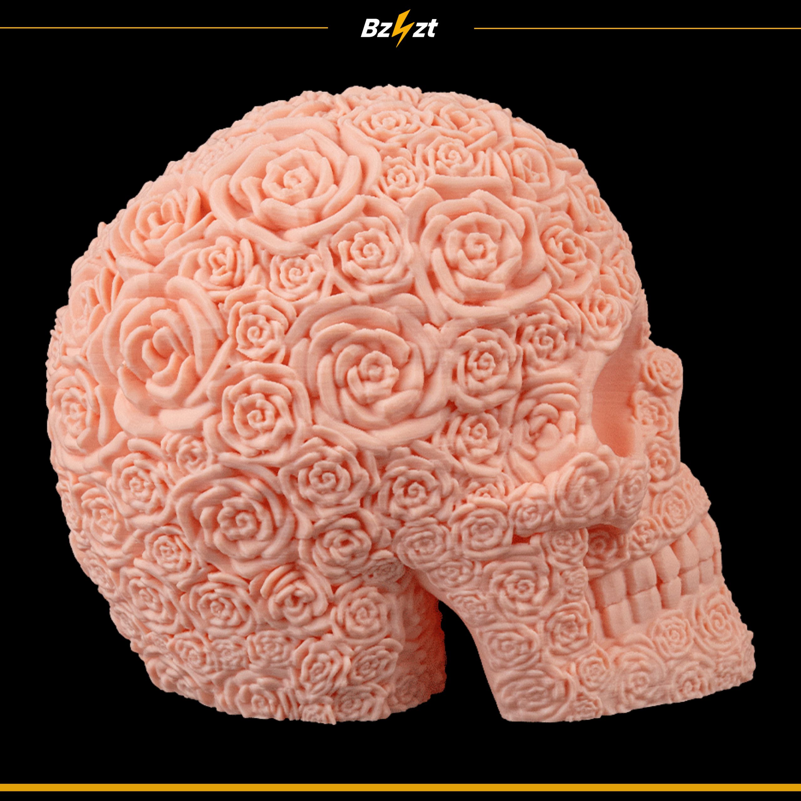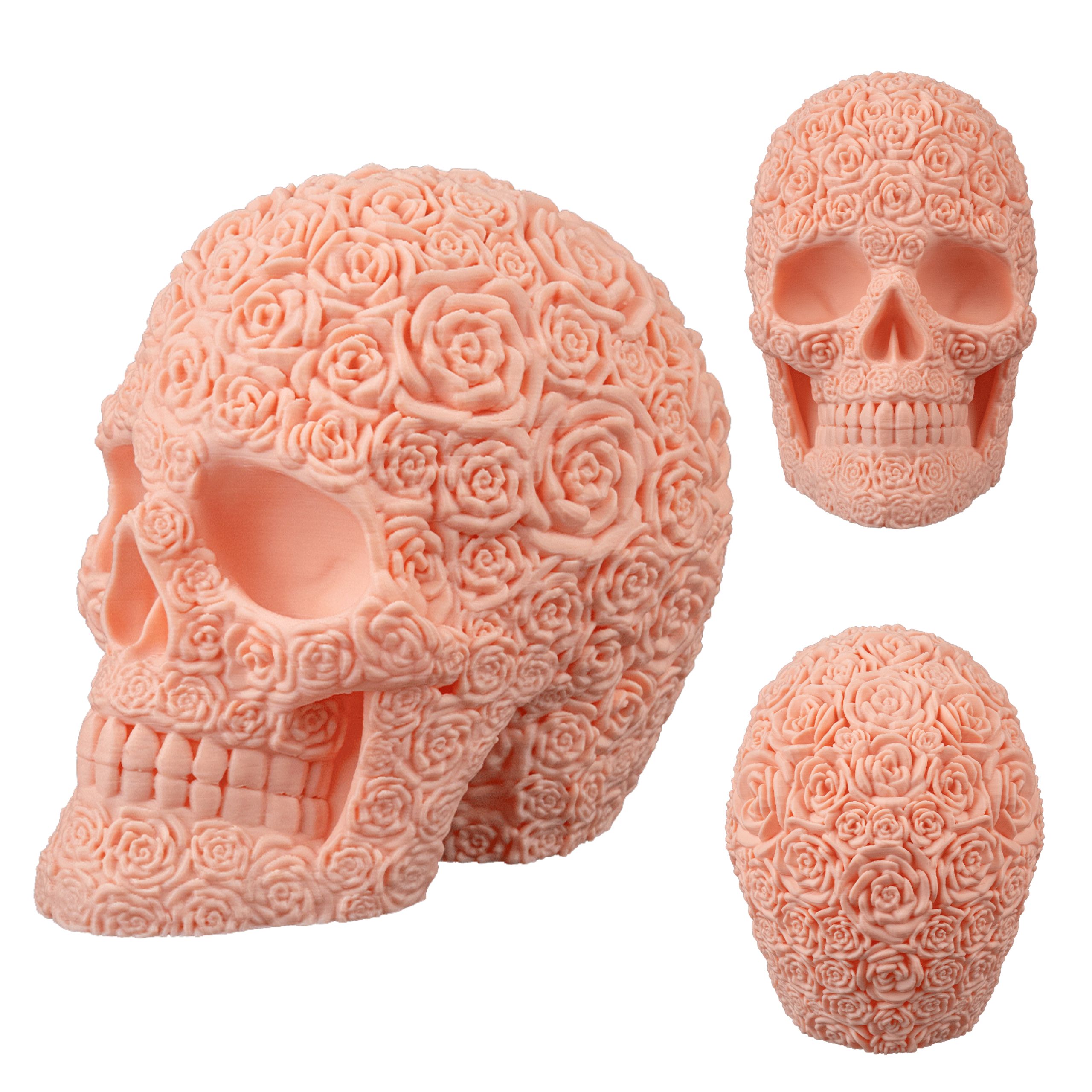 - Unikalny design – czaszka pokryta detalicznym motywem róż.