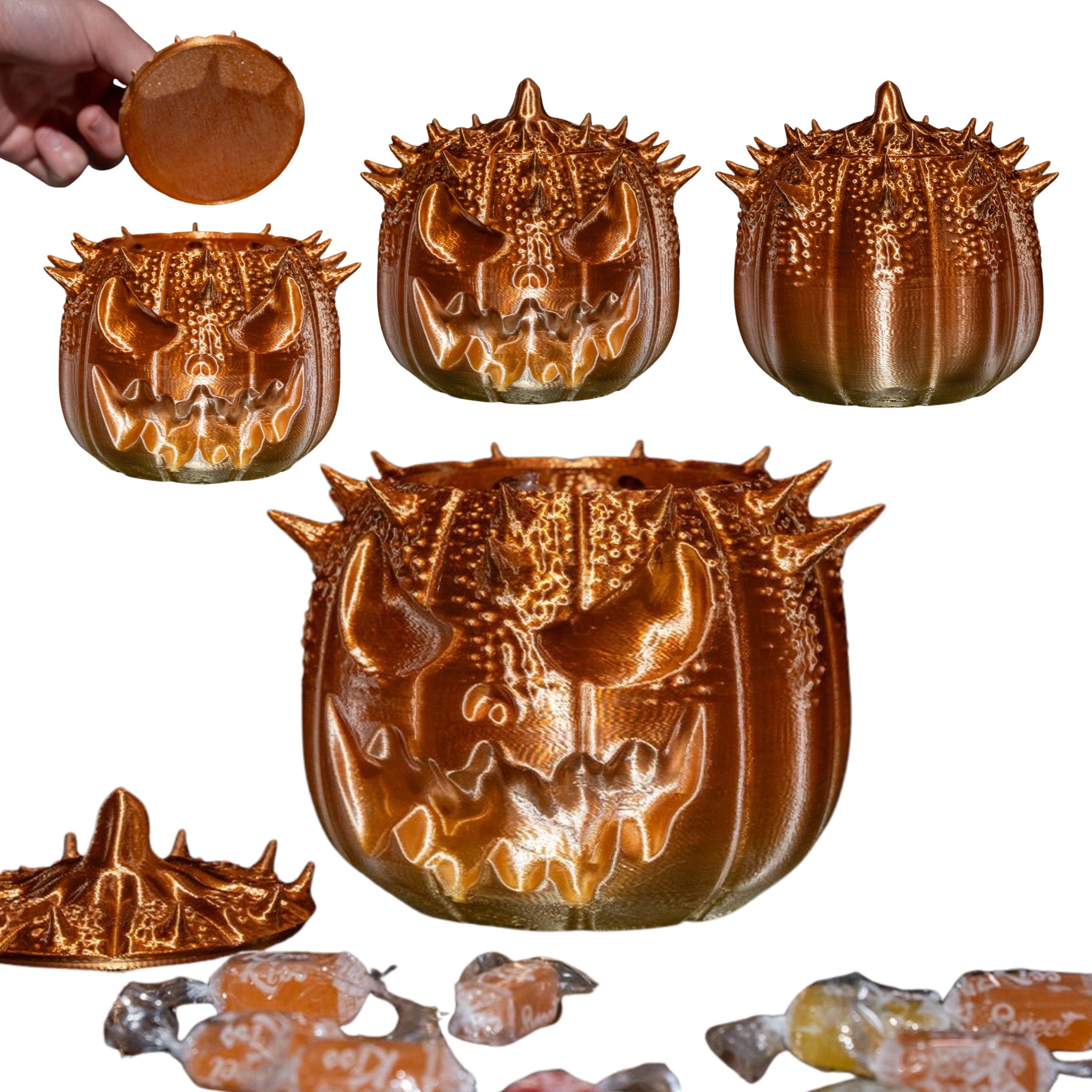 Dynia Halloween 3D – Kolczasty Pojemnik na Słodycze | Straszna Dekoracja Grozy
