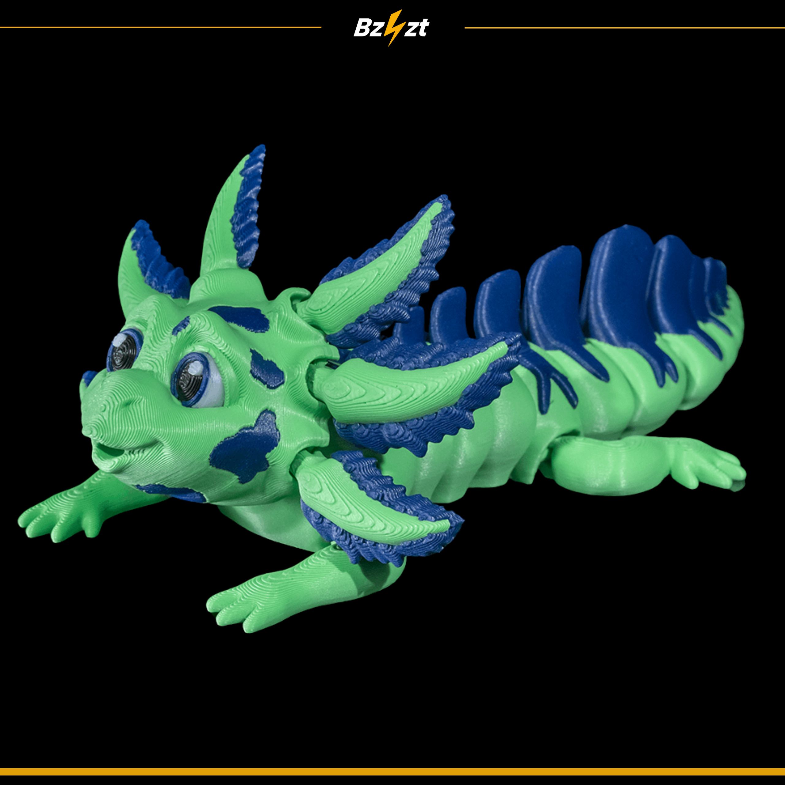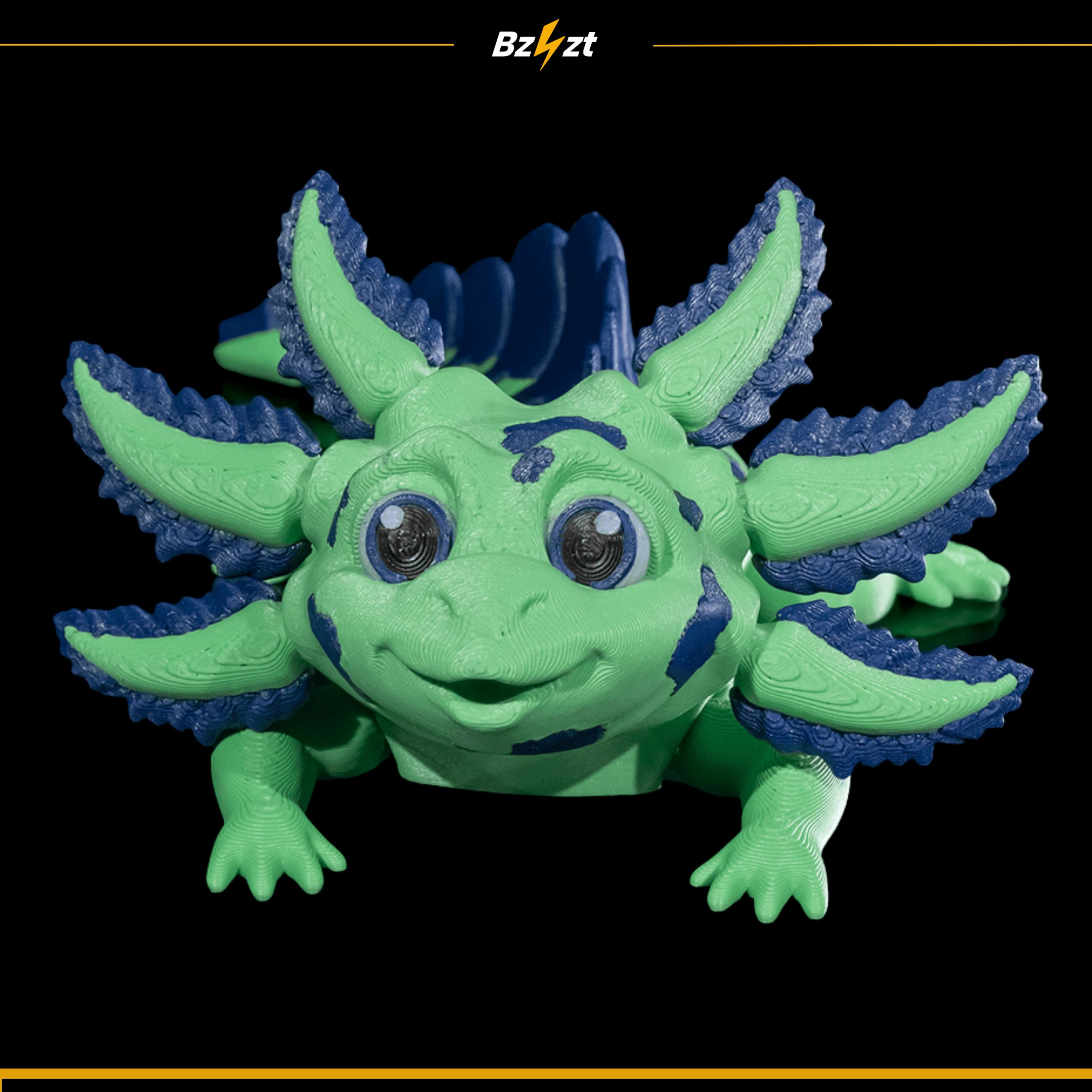 Figurka Aksolotl Zielono-Niebieski 3D – Kolekcjonerska Dekoracja
