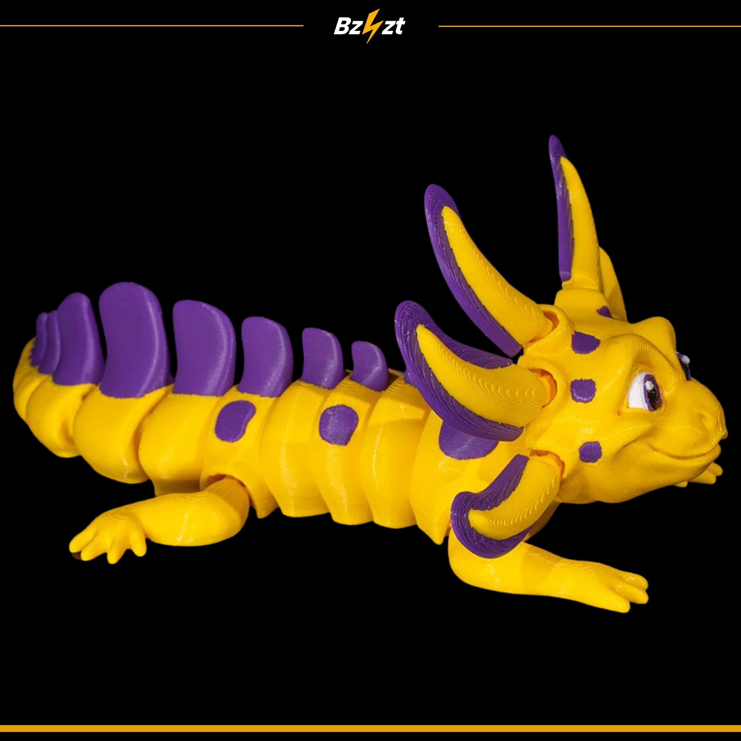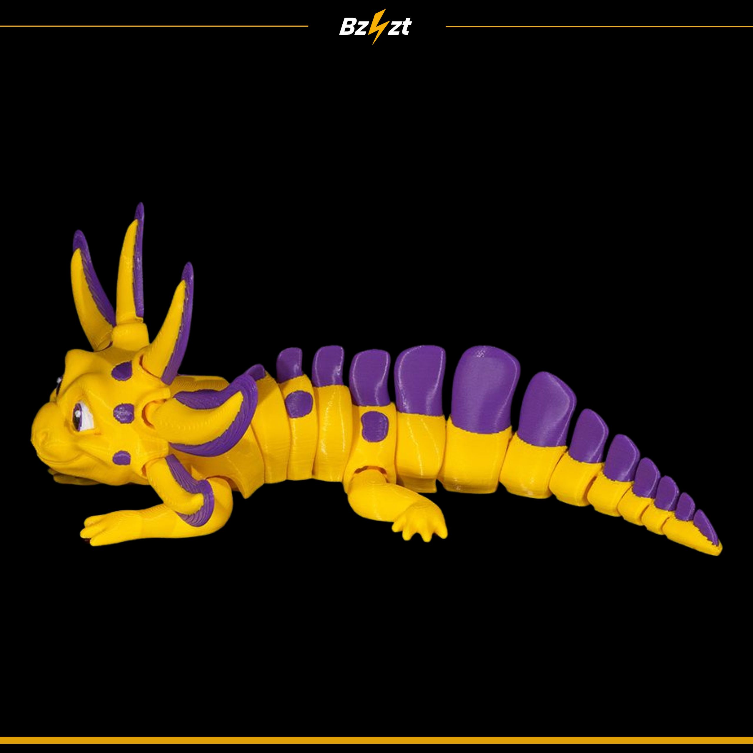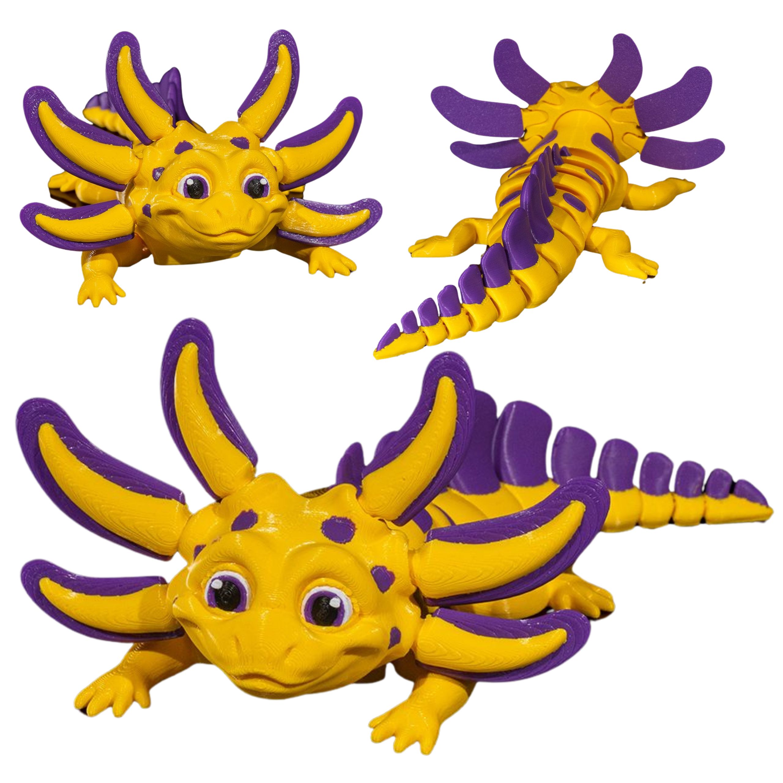 Figurka Aksolotl Żółto-Fioletowy 3D Kolekcjonerska Dekoracja | Model Ozdobny na Biurko i Półkę