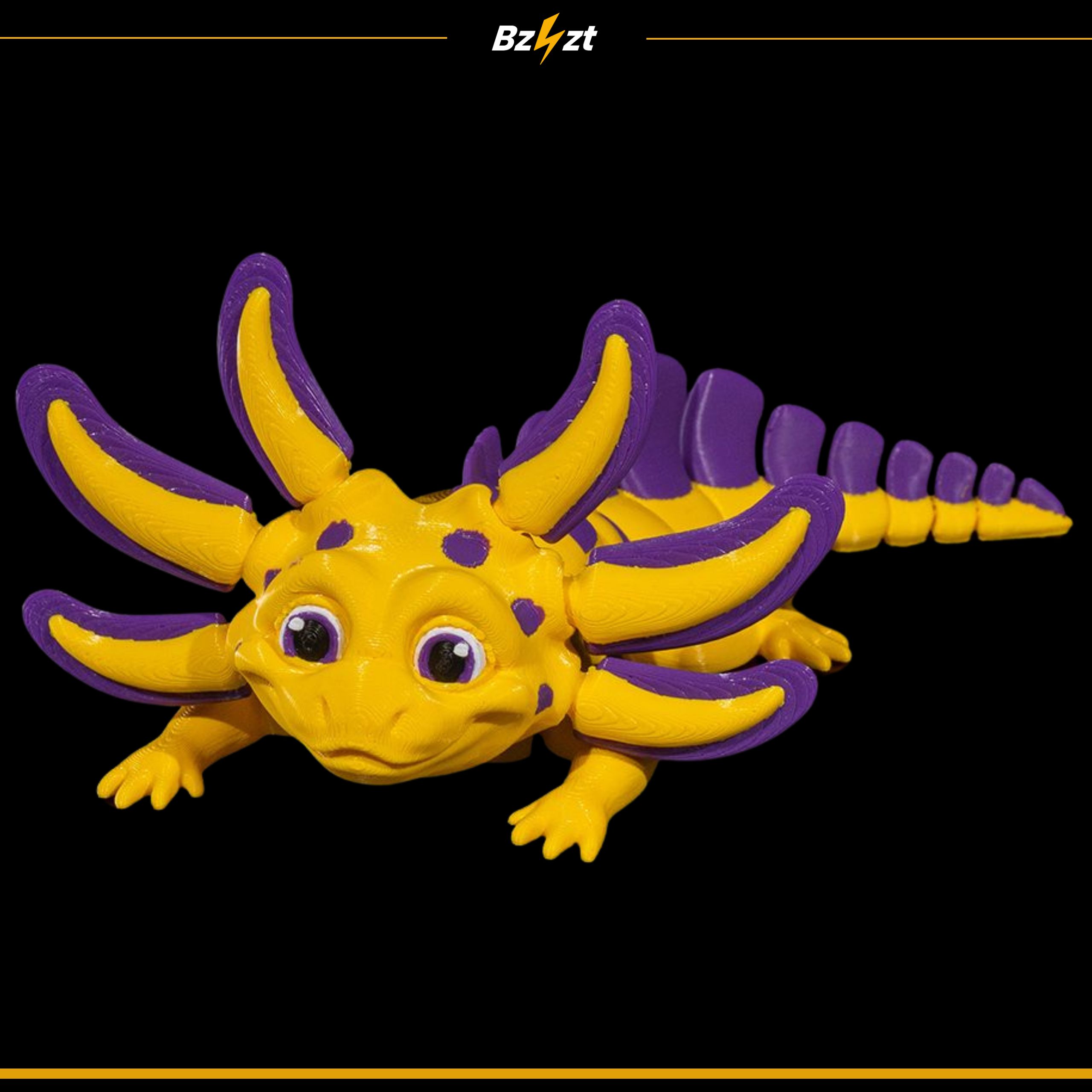 Figurka Aksolotl Żółto-Fioletowy 3D – Kolekcjonerska Dekoracja