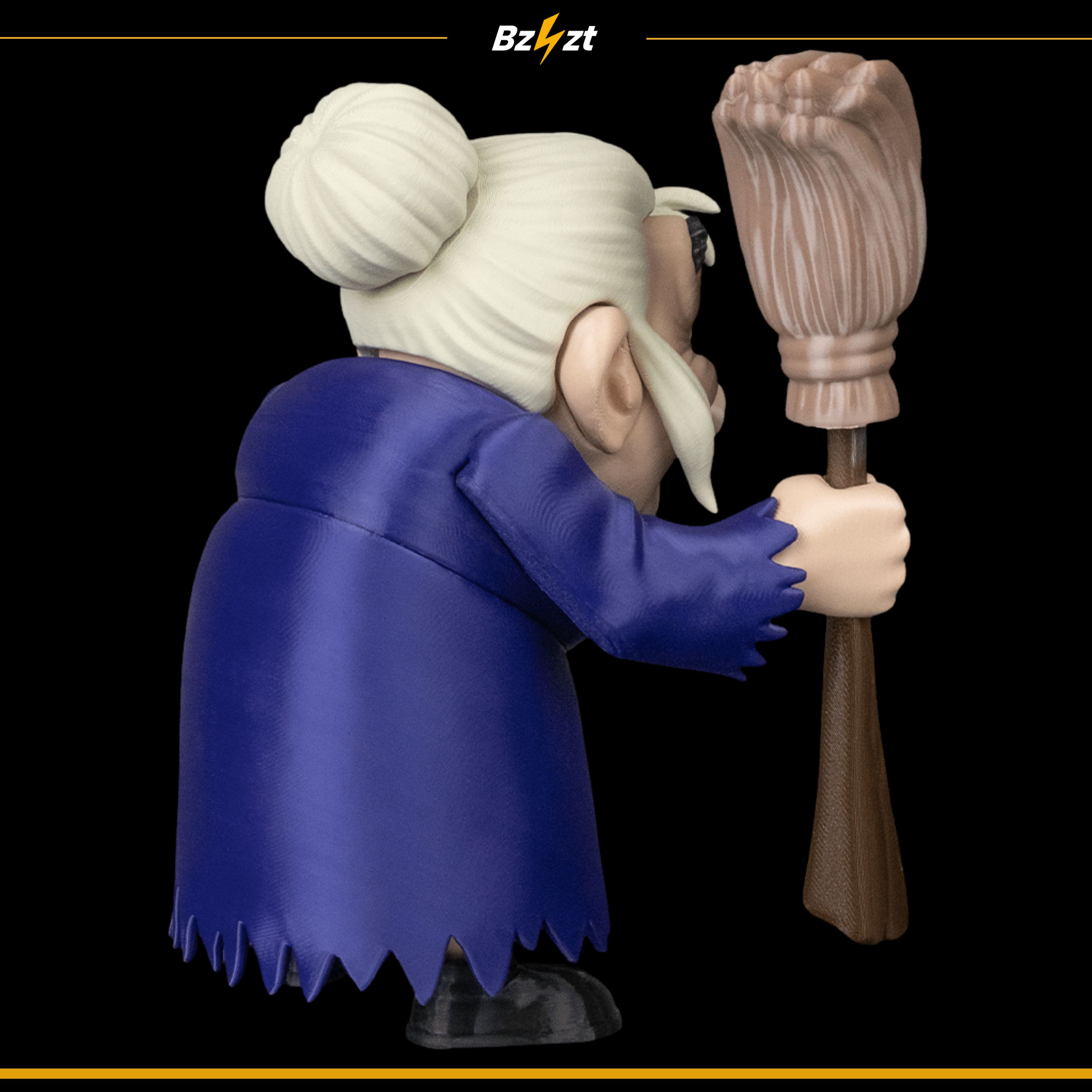 Unikalna dekoracja halloweenowa – figurka 3D czarownicy z miotłą, wykonana w klimacie grozy. Idealna do wystroju wnętrz na Halloween oraz jako element kolekcji.
