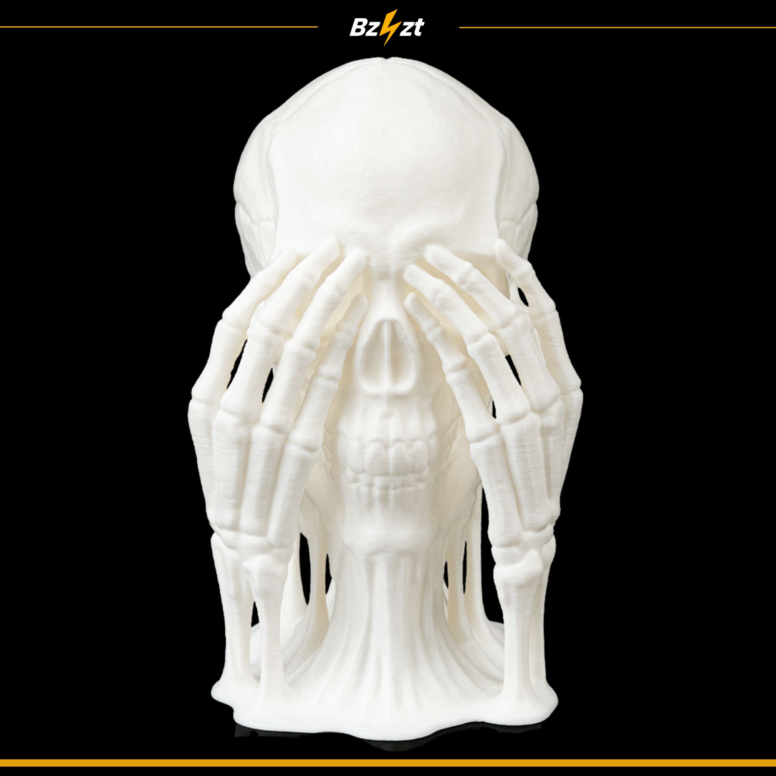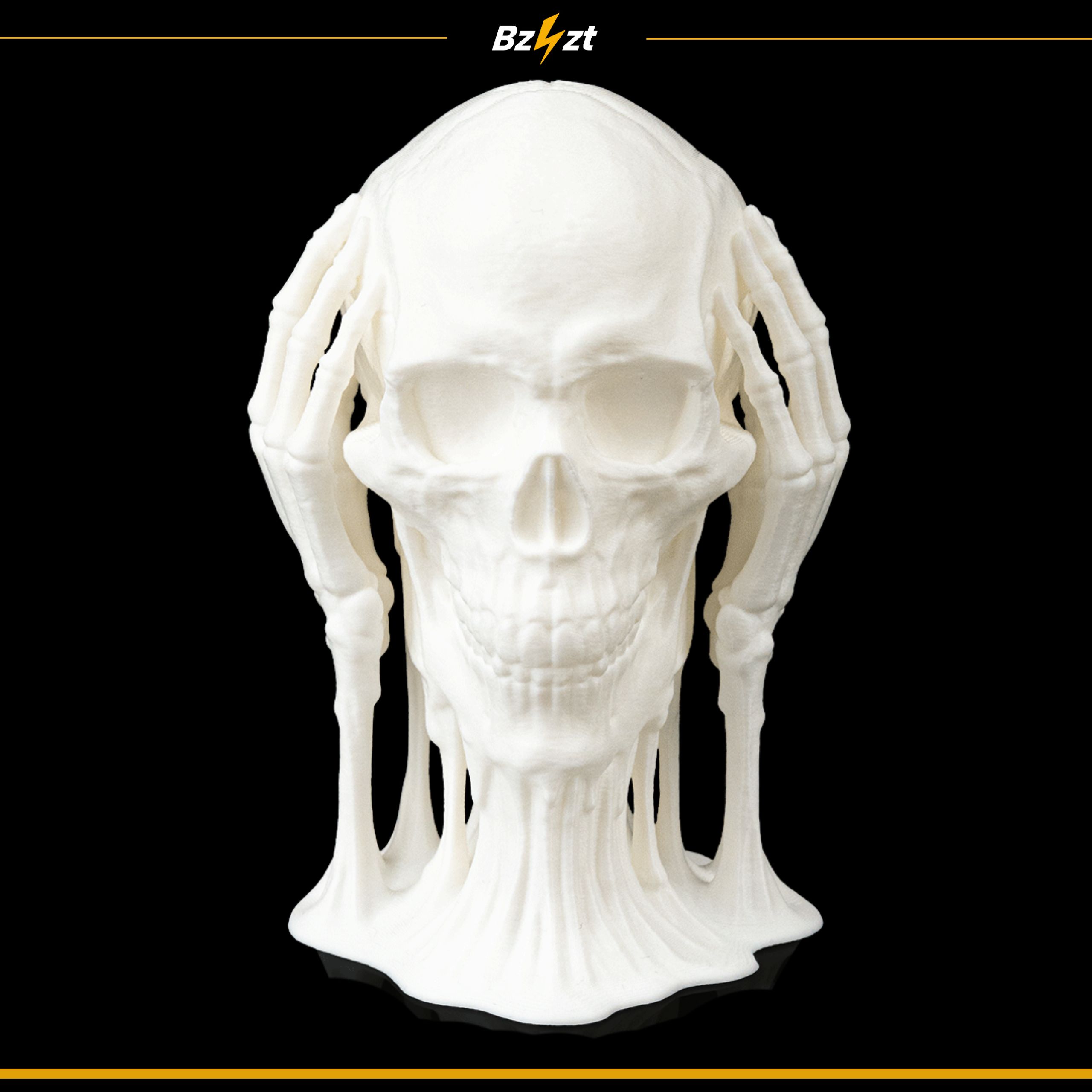 Figurka halloweenowa – czaszka z rękami. Wymiary 82 × 83 × 150 mm. Dostępna w wersji białej (niemalowanej) i malowanej ręcznie.