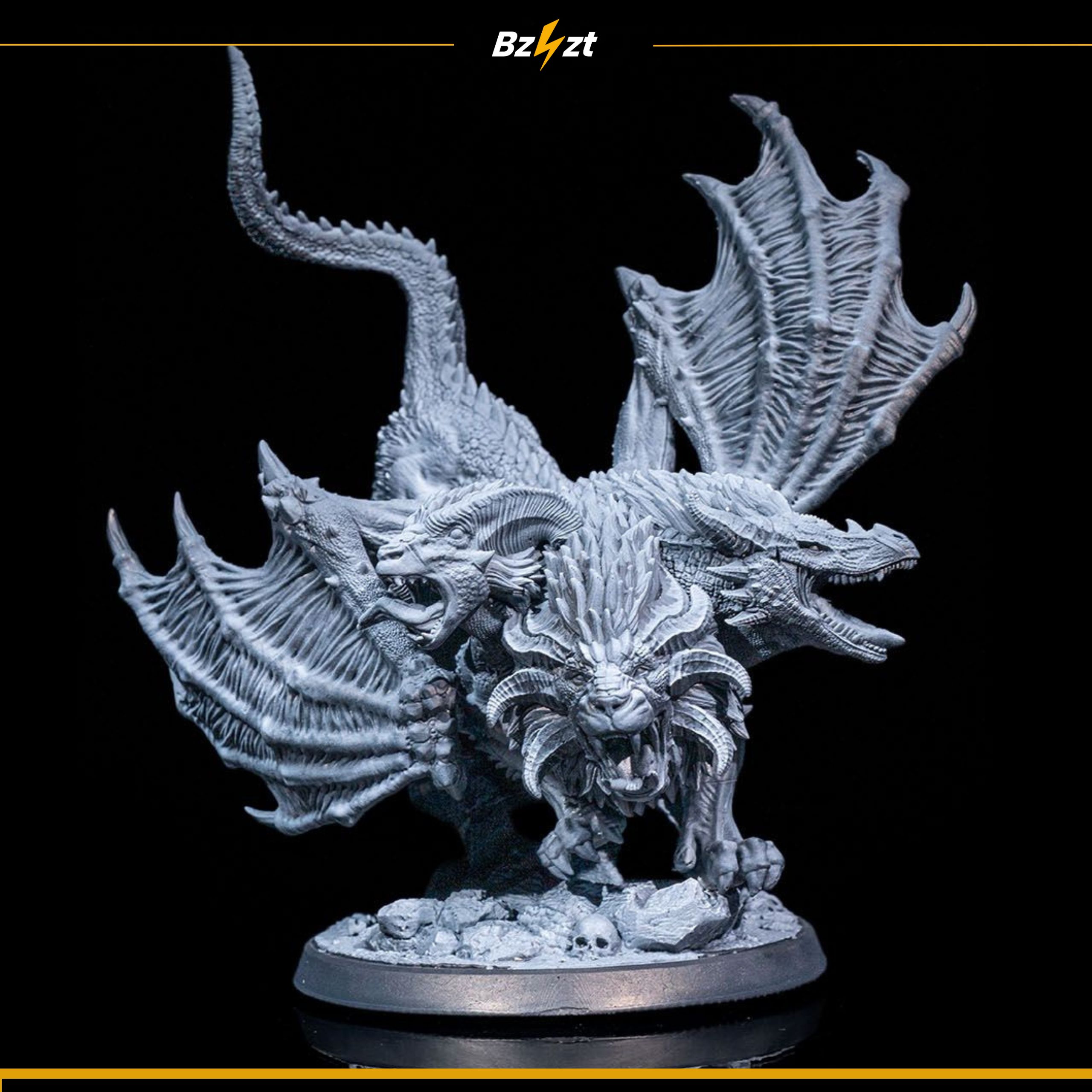 Chimera – figurka RPG fantasy przedstawiająca trzygłową bestię ze skrzydłami. Wersja niepomalowana (do własnego malowania) oraz pomalowana (gotowa do gry i kolekcji).