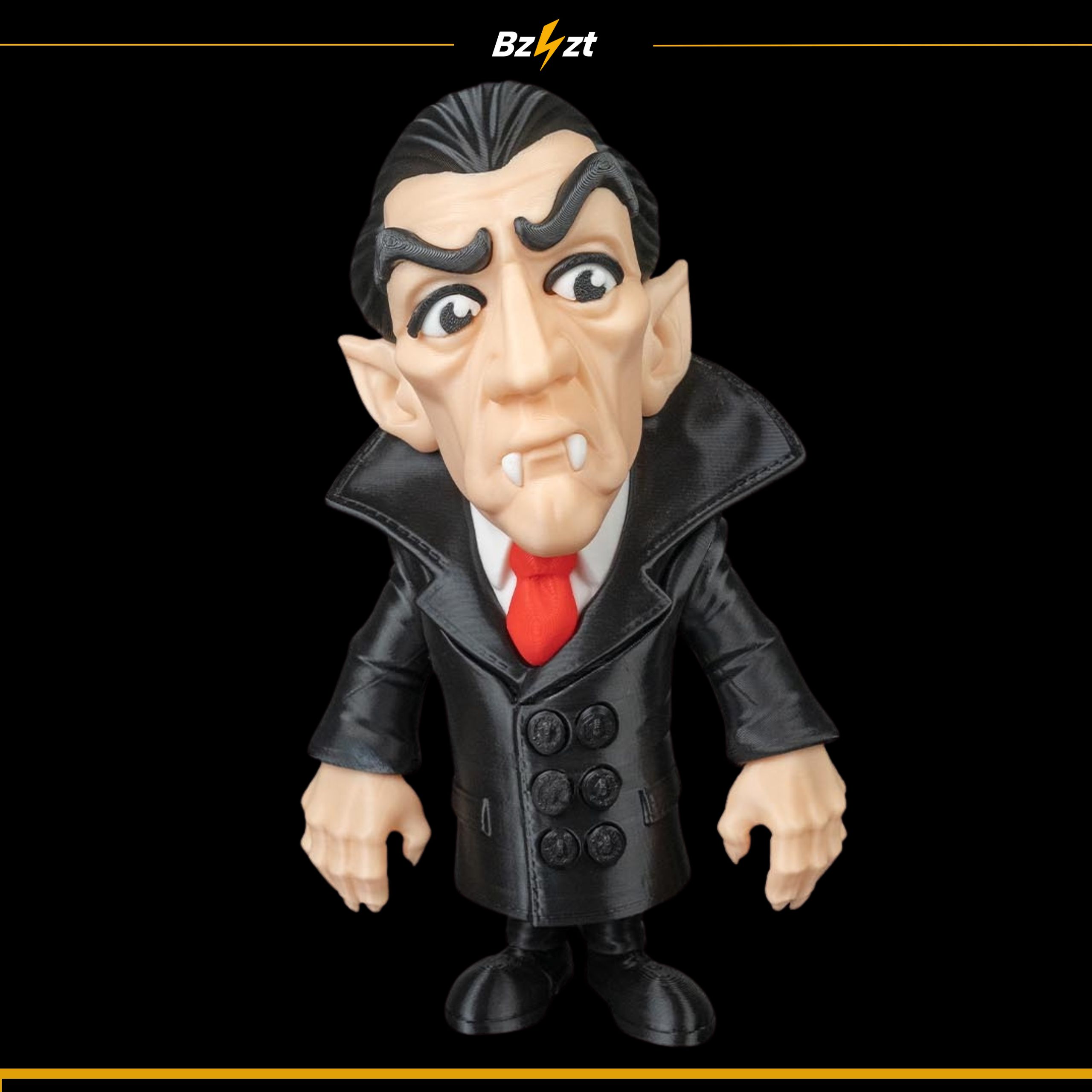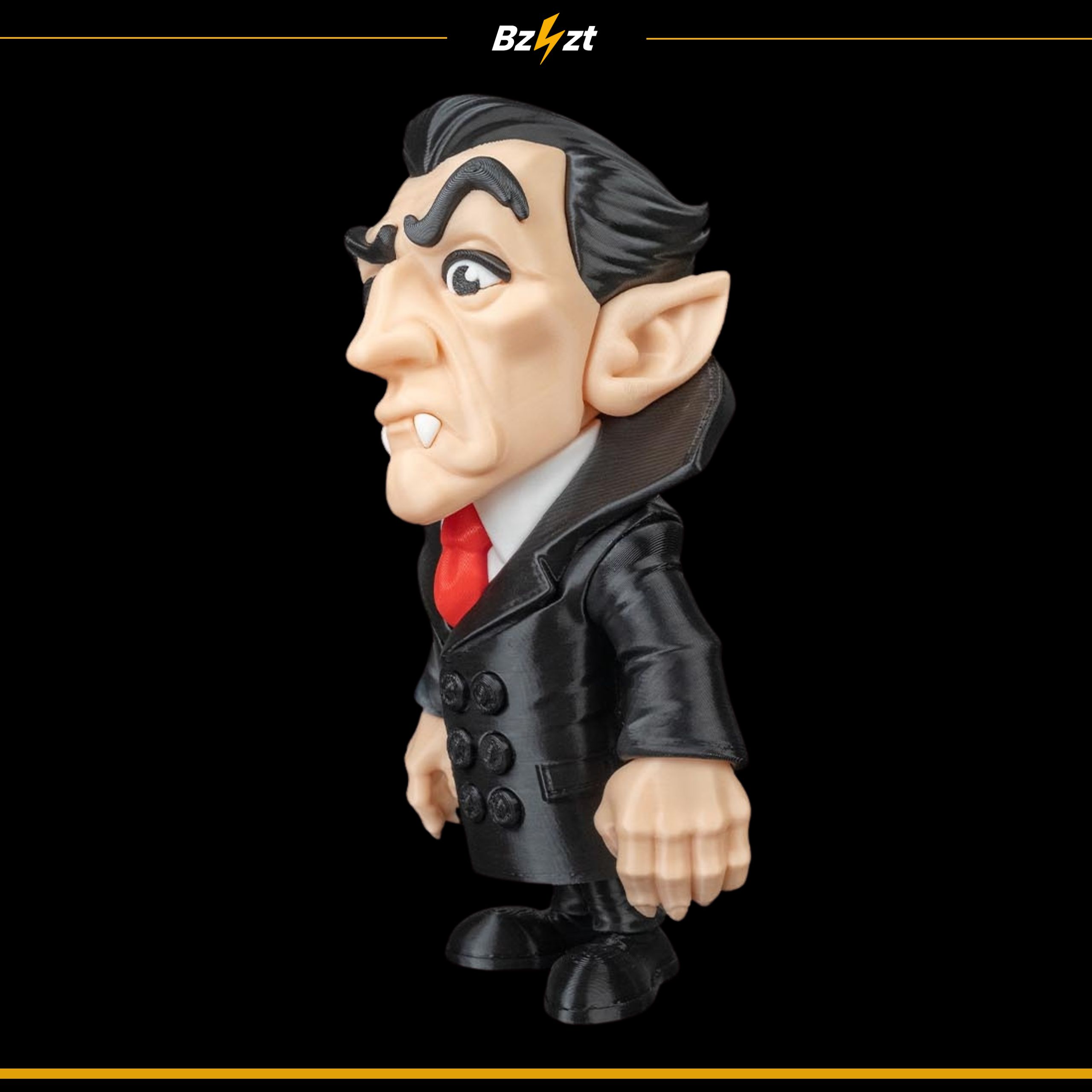 - Starannie wykonane detale: twarz wampira, charakterystyczne kły i czarny płaszcz.