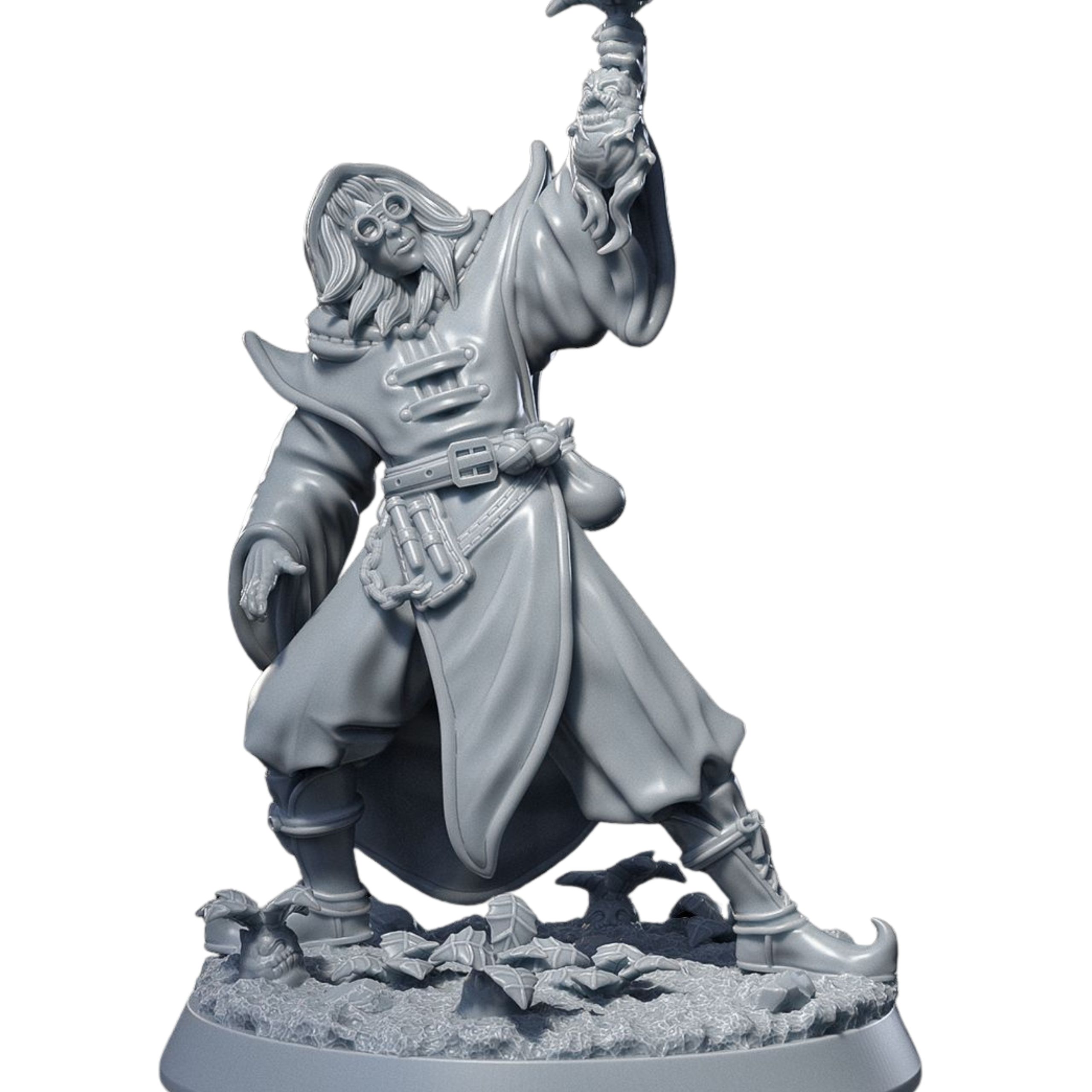 Isos to figurka RPG przedstawiająca tajemniczą postać fantasy. Model wykonany z dbałością o szczegóły sprawdzi się zarówno podczas sesji RPG, jak i w kolekcji figurek.