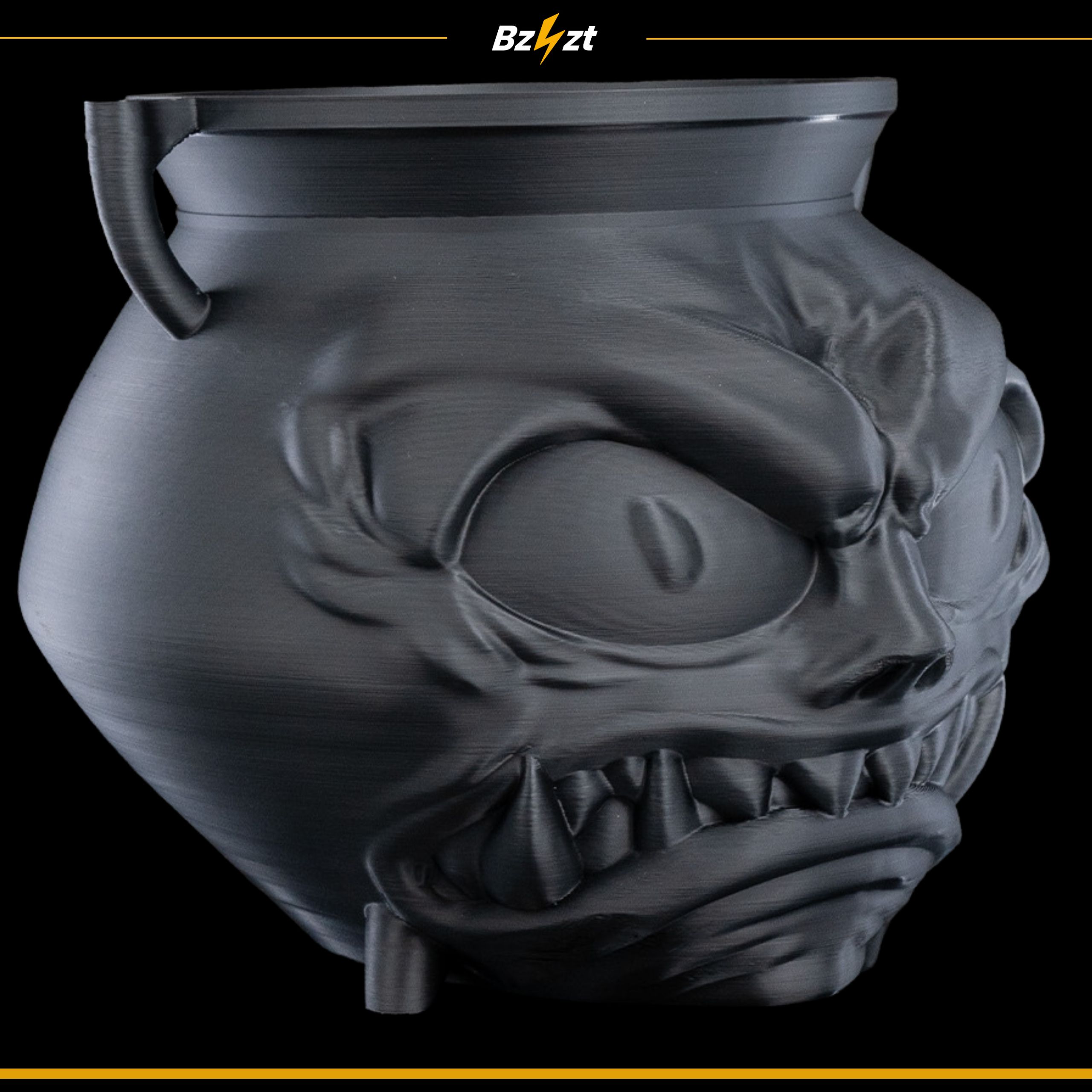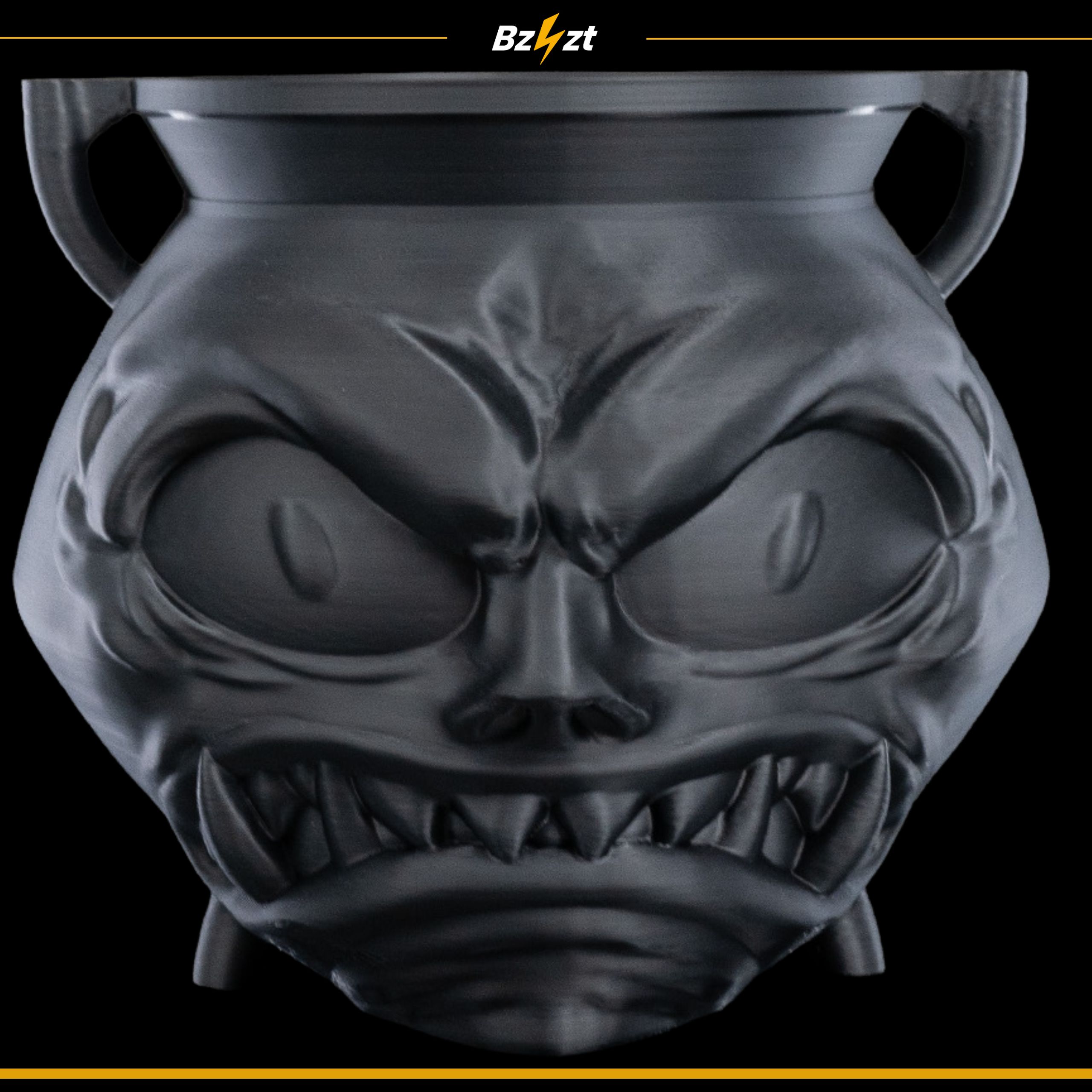 Kociołek halloweenowy 3D – wyjątkowa dekoracja w klimacie grozy. Wymiary 175 × 190 × 147 mm. Idealny jako ozdoba, rekwizyt lub pojemnik na słodycze.