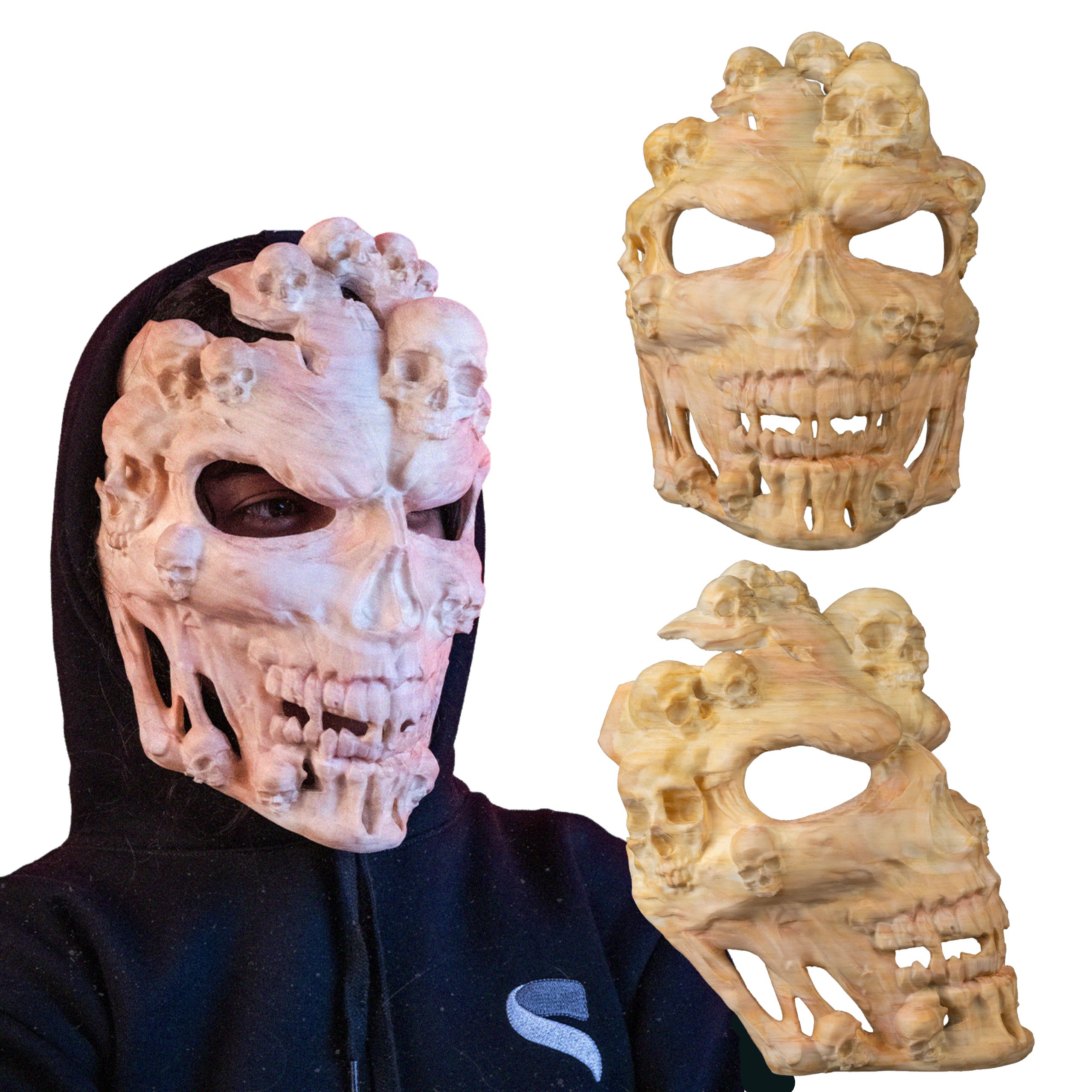 Wyjątkowa maska halloweenowa ozdobiona wieloma czaszkami. To idealny wybór na imprezy halloweenowe, cosplay, sesje zdjęciowe czy dekoracje wnętrz w klimacie grozy. Dzięki drukowi 3D maska wyróżnia się detalami i solidnym wykonaniem.