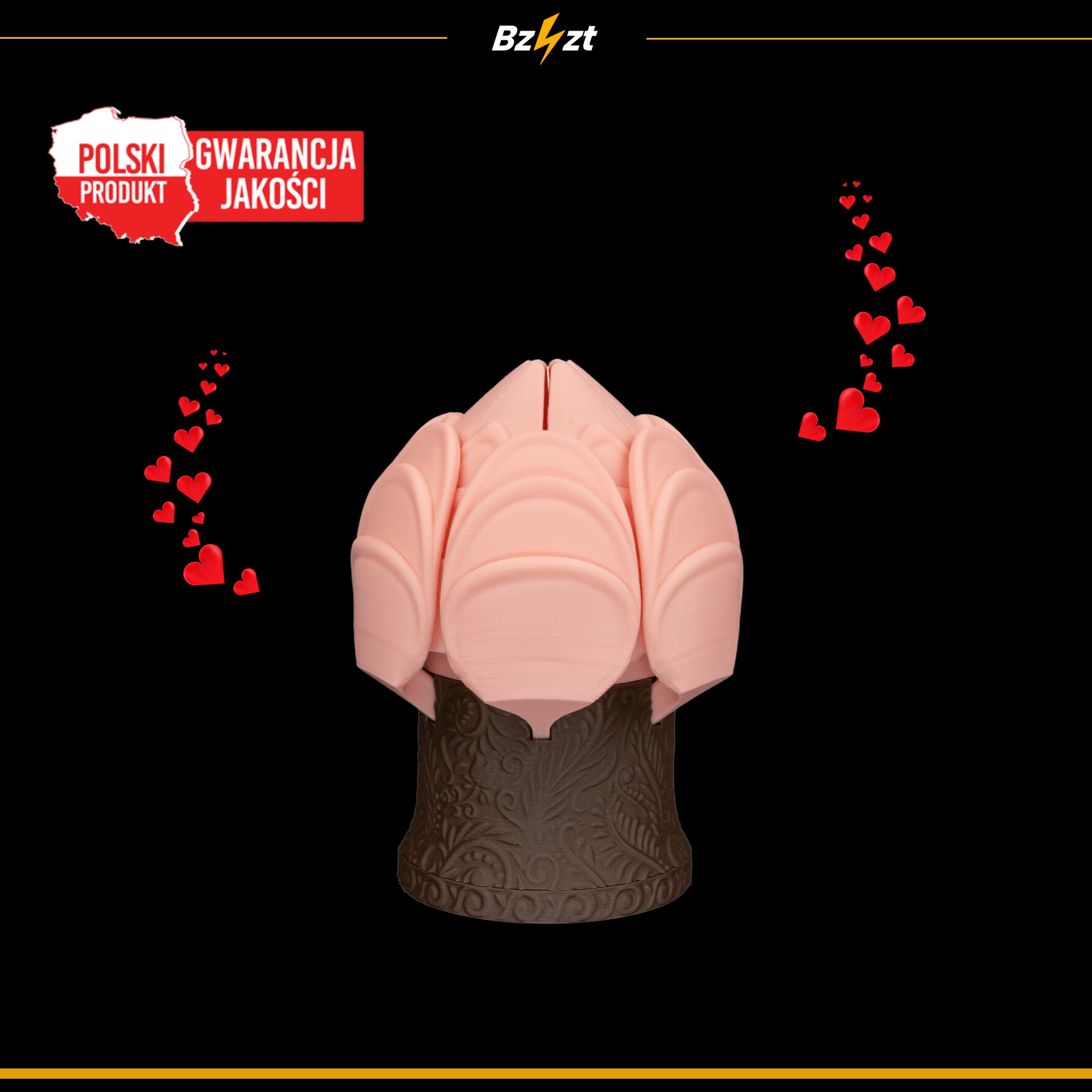Magiczne pudełko w formie kwiatu, które rozkłada się, odsłaniając pierścionek lub biżuterię. Idealny wybór na Walentynki i romantyczne chwile