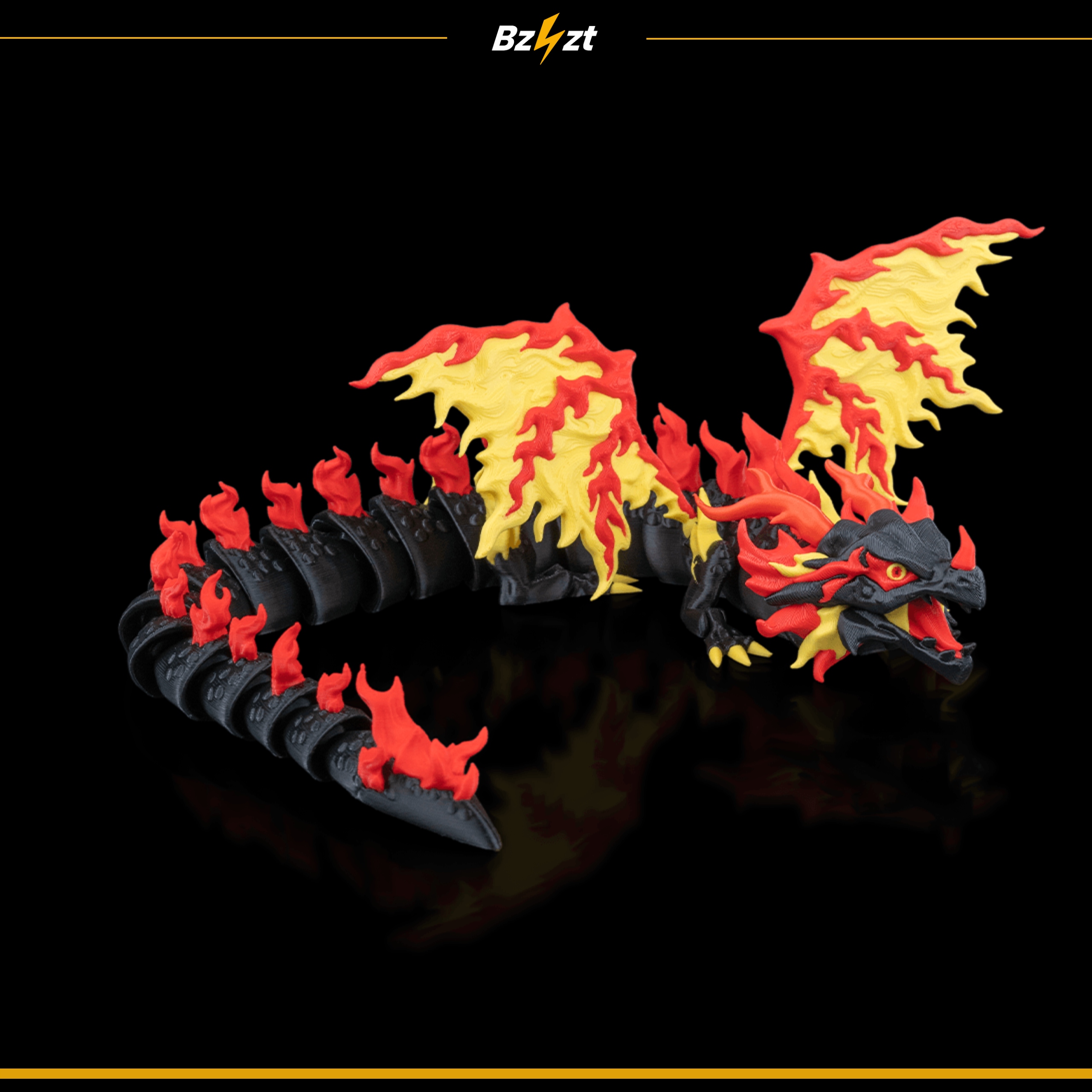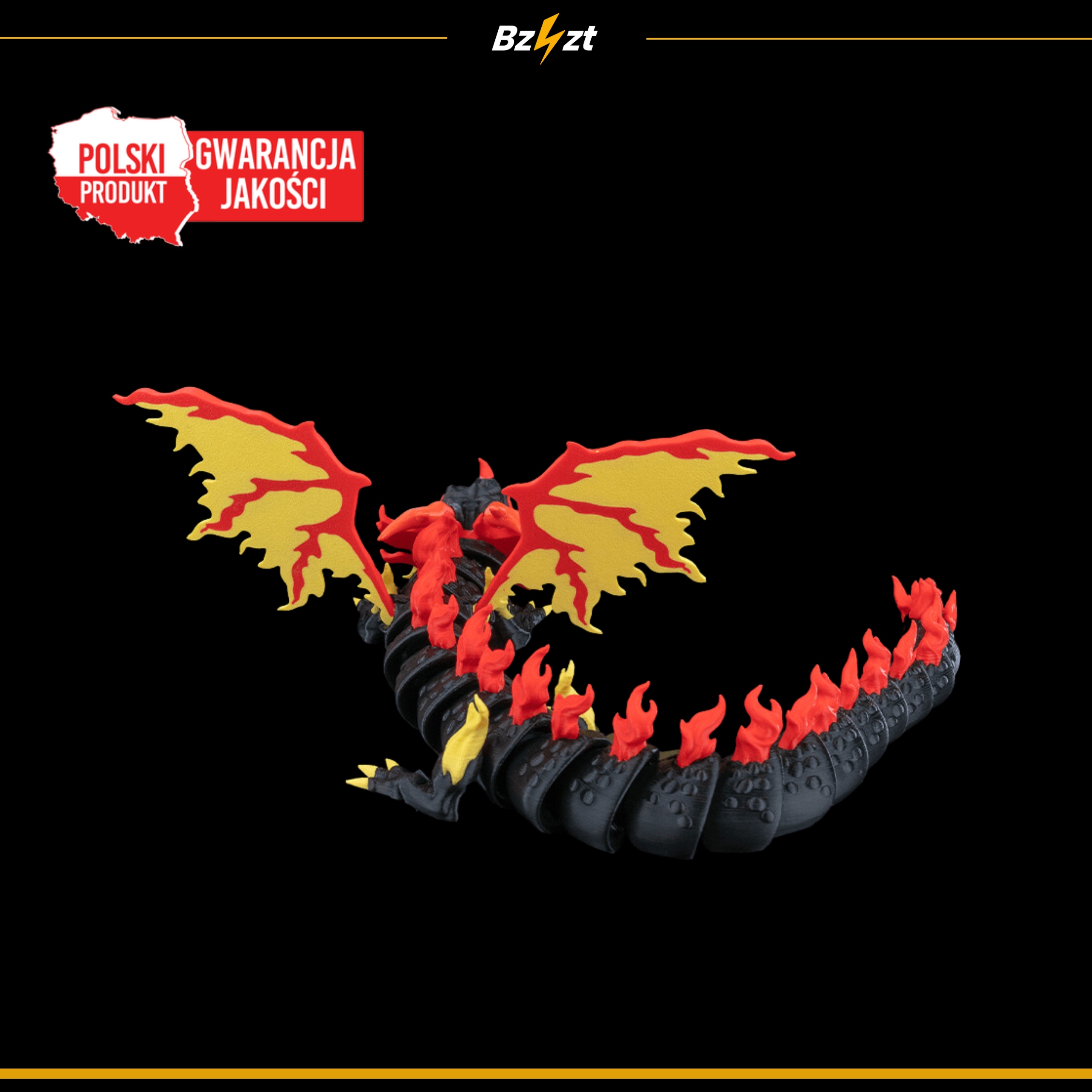 - Majestatyczne skrzydła – przyciągają wzrok i podkreślają ognisty charakter smoka.