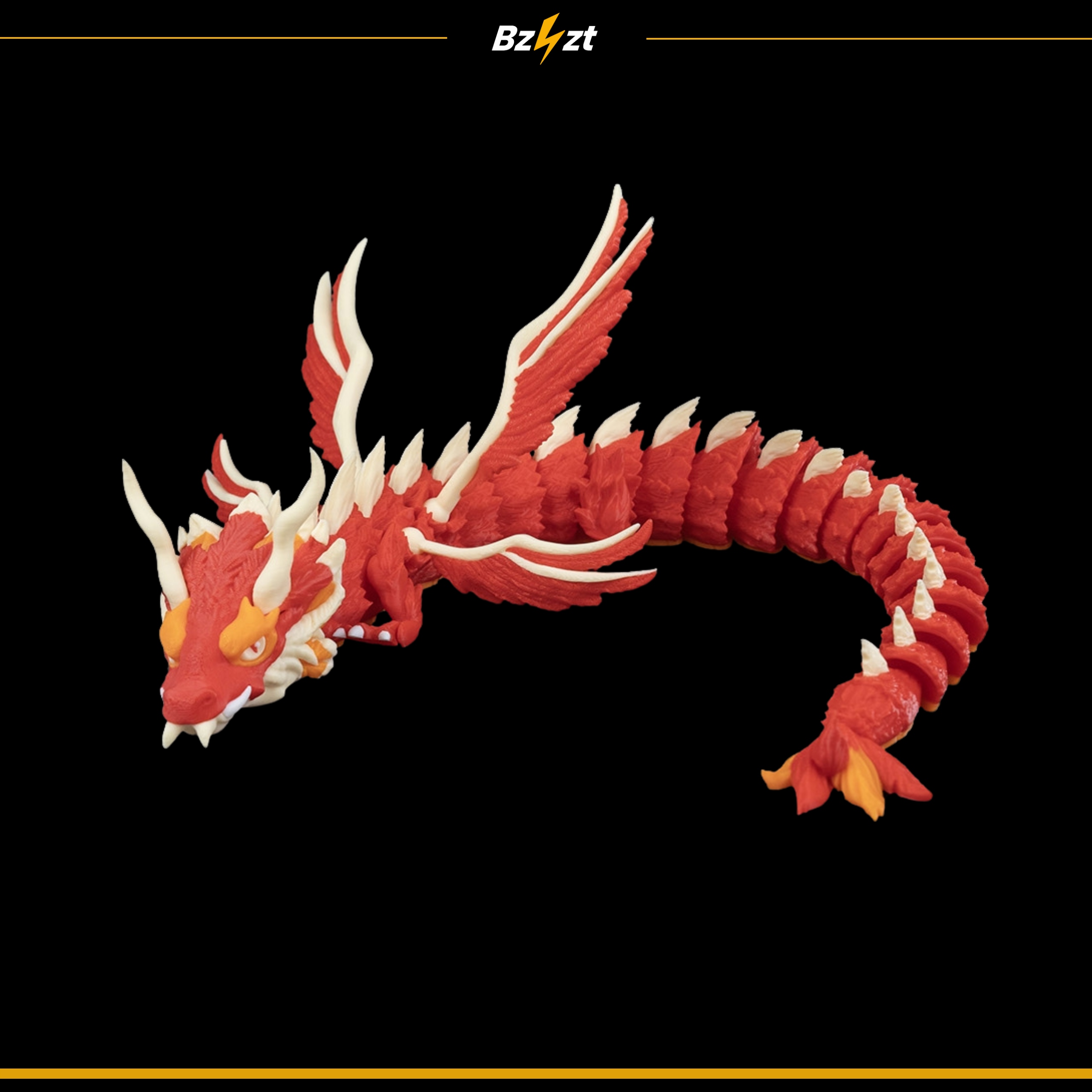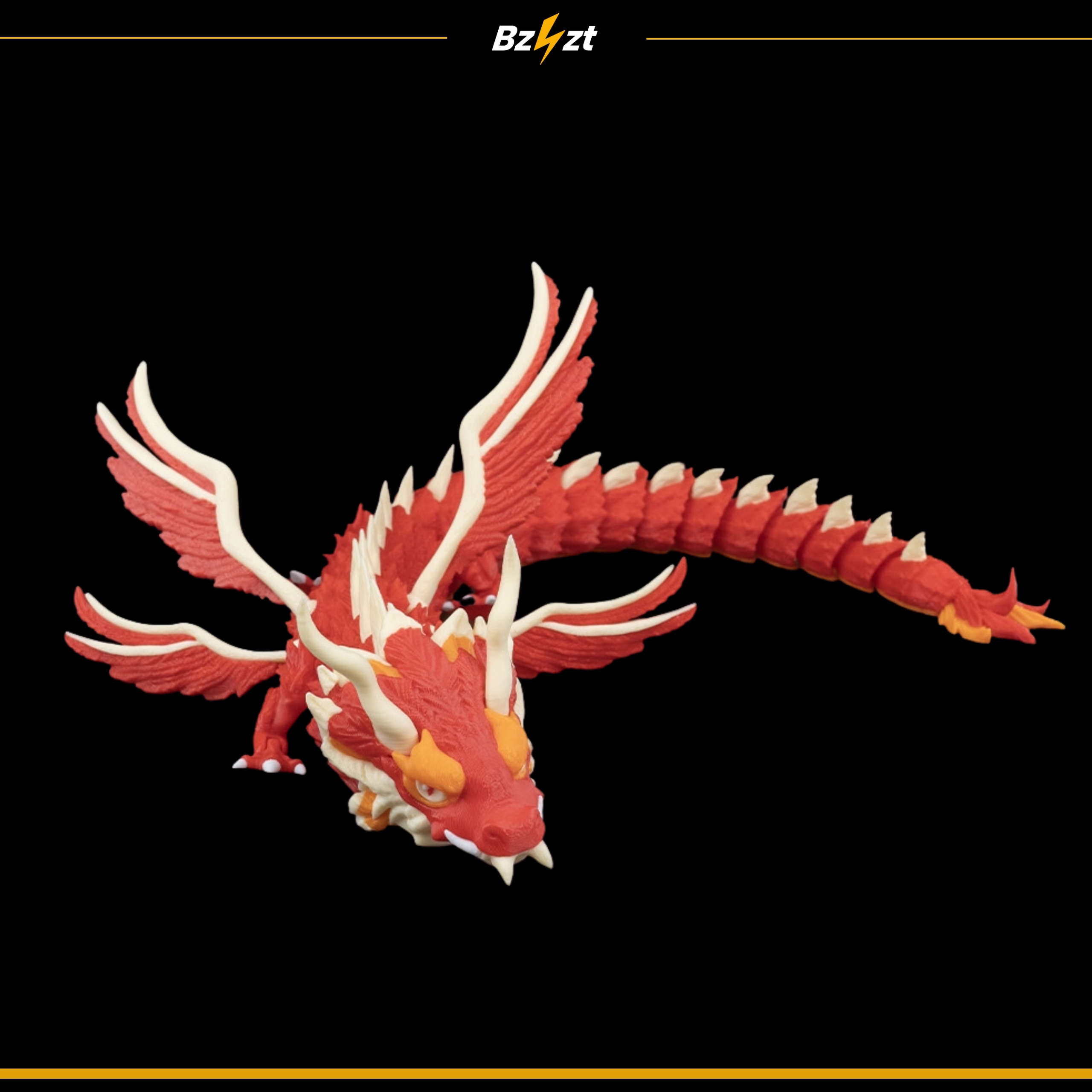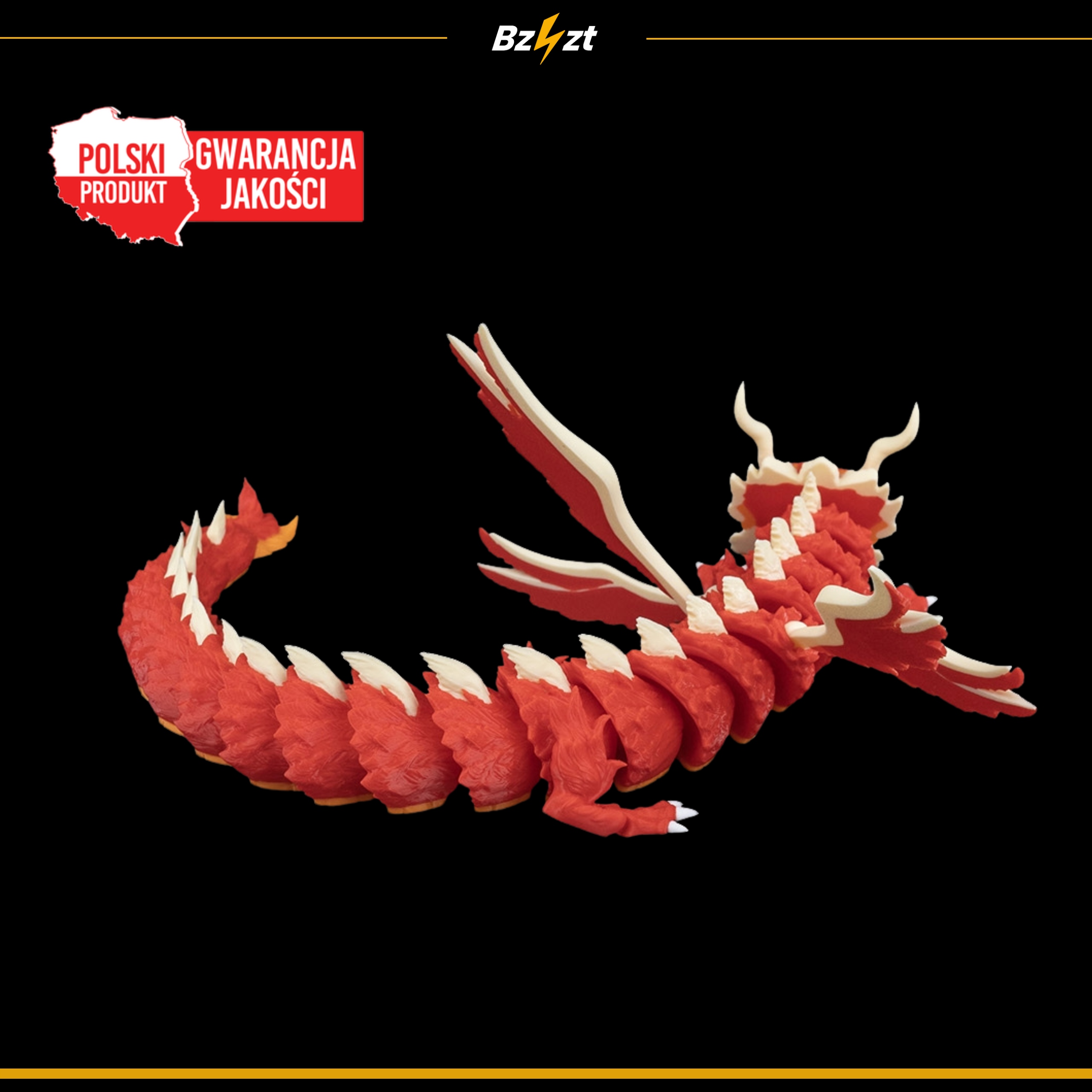 Królewski Smok to majestatyczna figurka Fantasy o długości 35 cm. Dynamiczna sylwetka, ognisty wygląd i ruchome skrzydła sprawiają, że jest idealną ozdobą wnętrza, unikalnym prezentem lub elementem kolekcji.