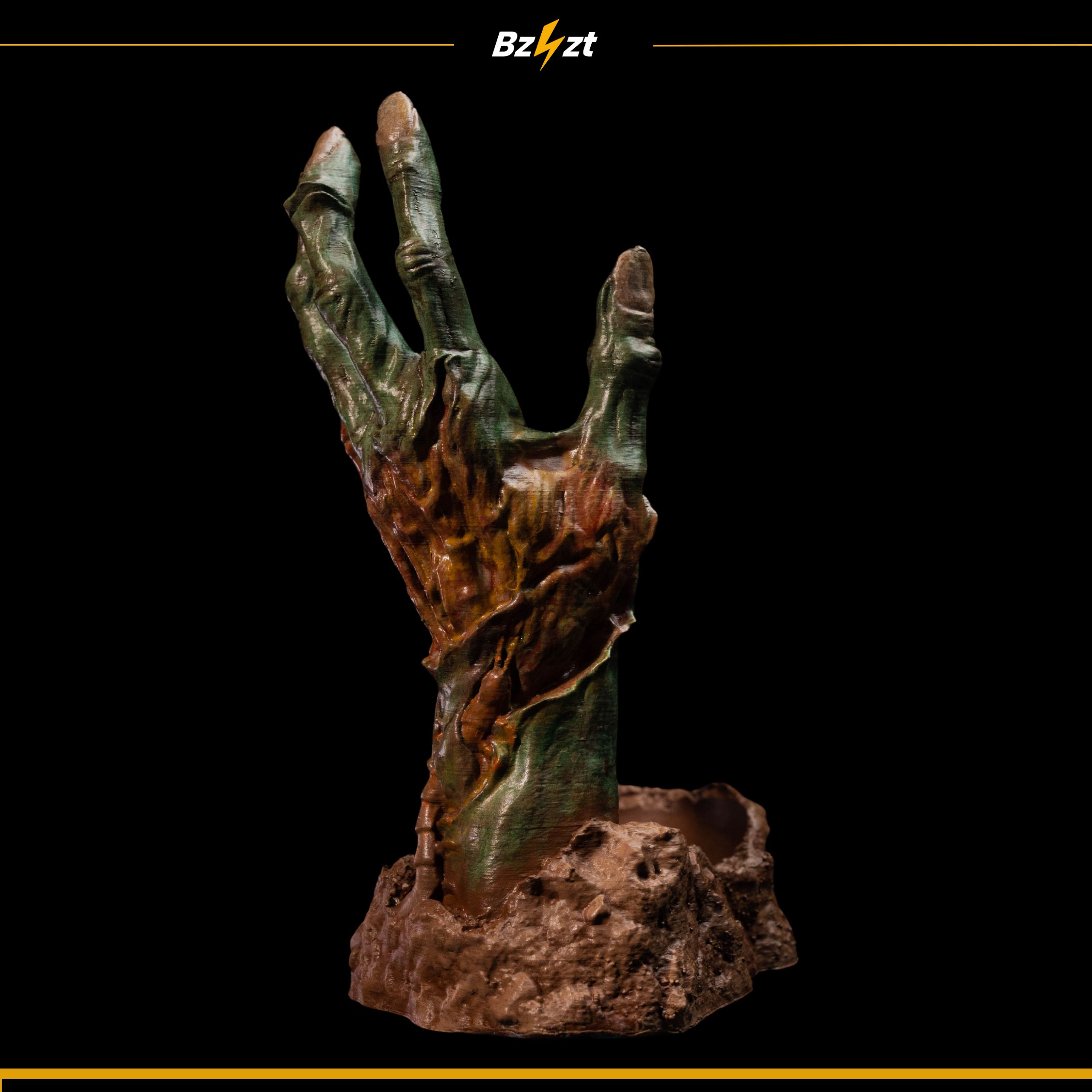 Wyjątkowy stojak na wino w formie ręki zombie, wykonany w technologii druku 3D. Idealna ozdoba na Halloween, imprezy tematyczne czy prezent dla fanów grozy. Stabilna konstrukcja i unikalny design przyciągają uwagę i nadają każdemu wnętrzu mroczny charakter.