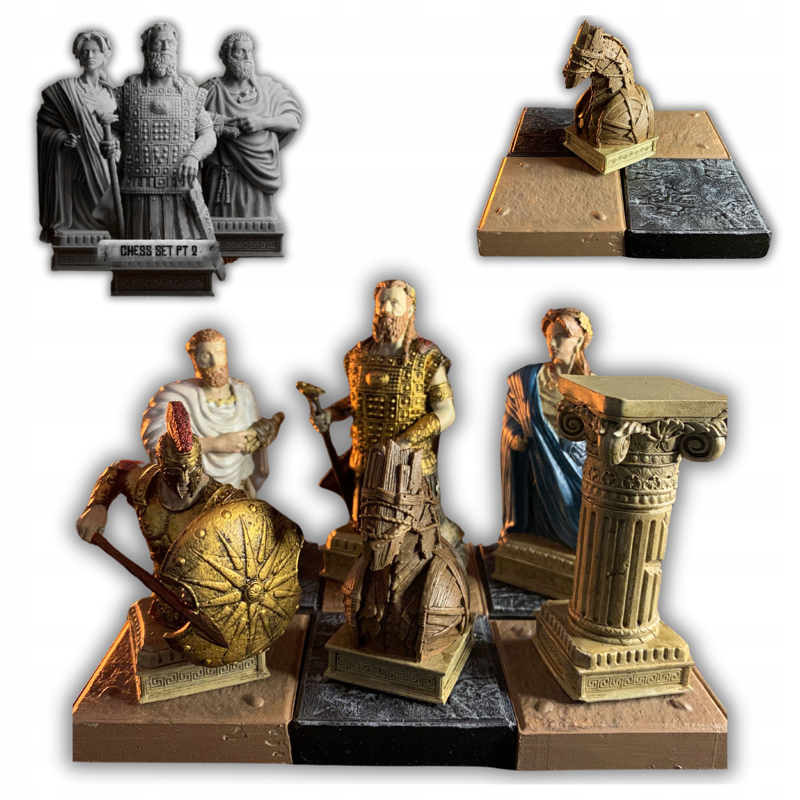 Unikalny zestaw Szachy Sparta Greek – 32 figurki antyczne inspirowane mitologią grecką, o wysokości 6–7 cm. Precyzyjne wykonanie w technologii druku 3D z detalami przypominającymi klasyczne rzeźby. Idealne do gry i jako wyjątkowa ozdoba.