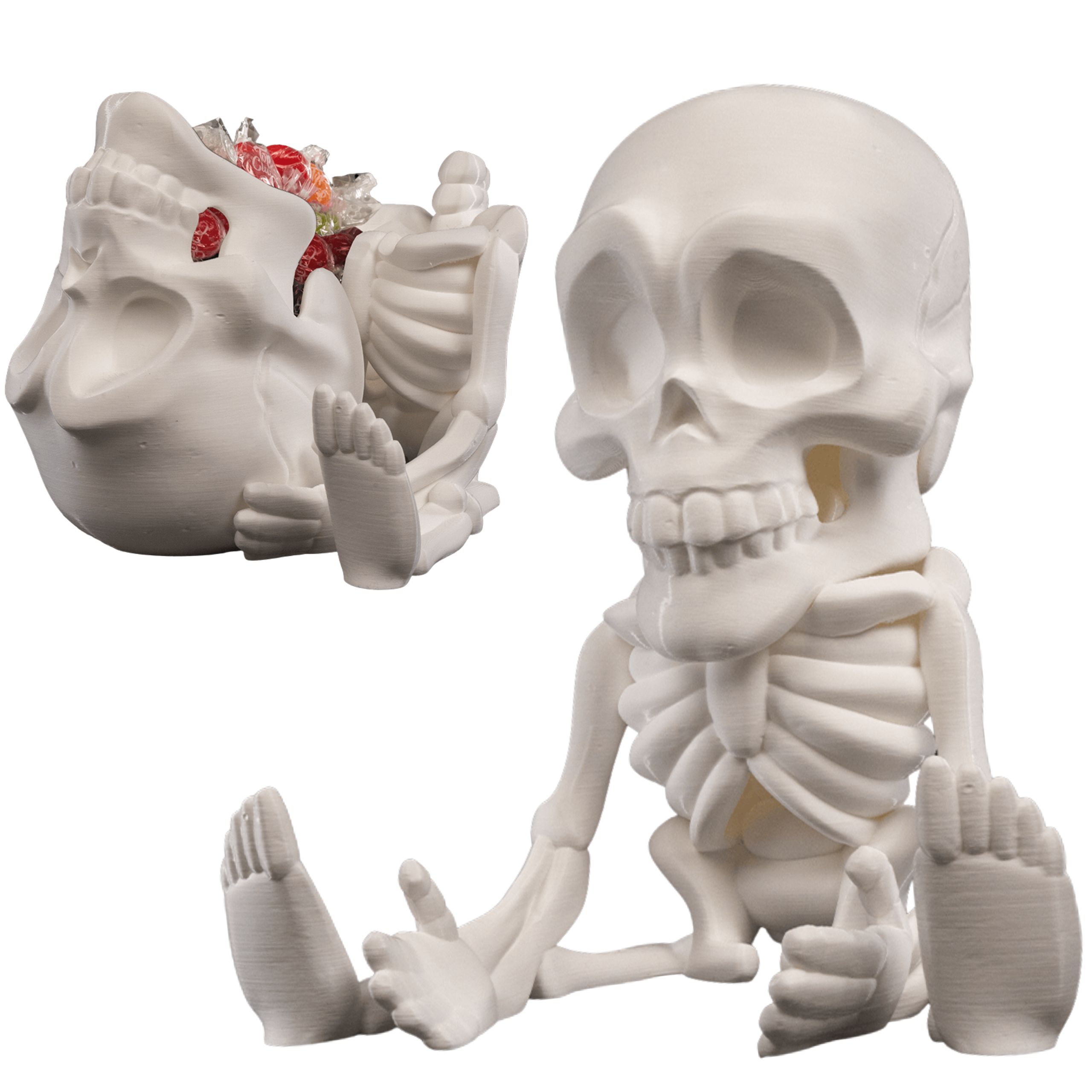 Szkielet halloweenowy 3D o wysokości 15 cm – unikalna dekoracja grozy i funkcjonalny pojemnik na słodycze. Idealny na imprezy halloweenowe, ozdobę wnętrza lub klimatyczny gadżet kolekcjonerski.