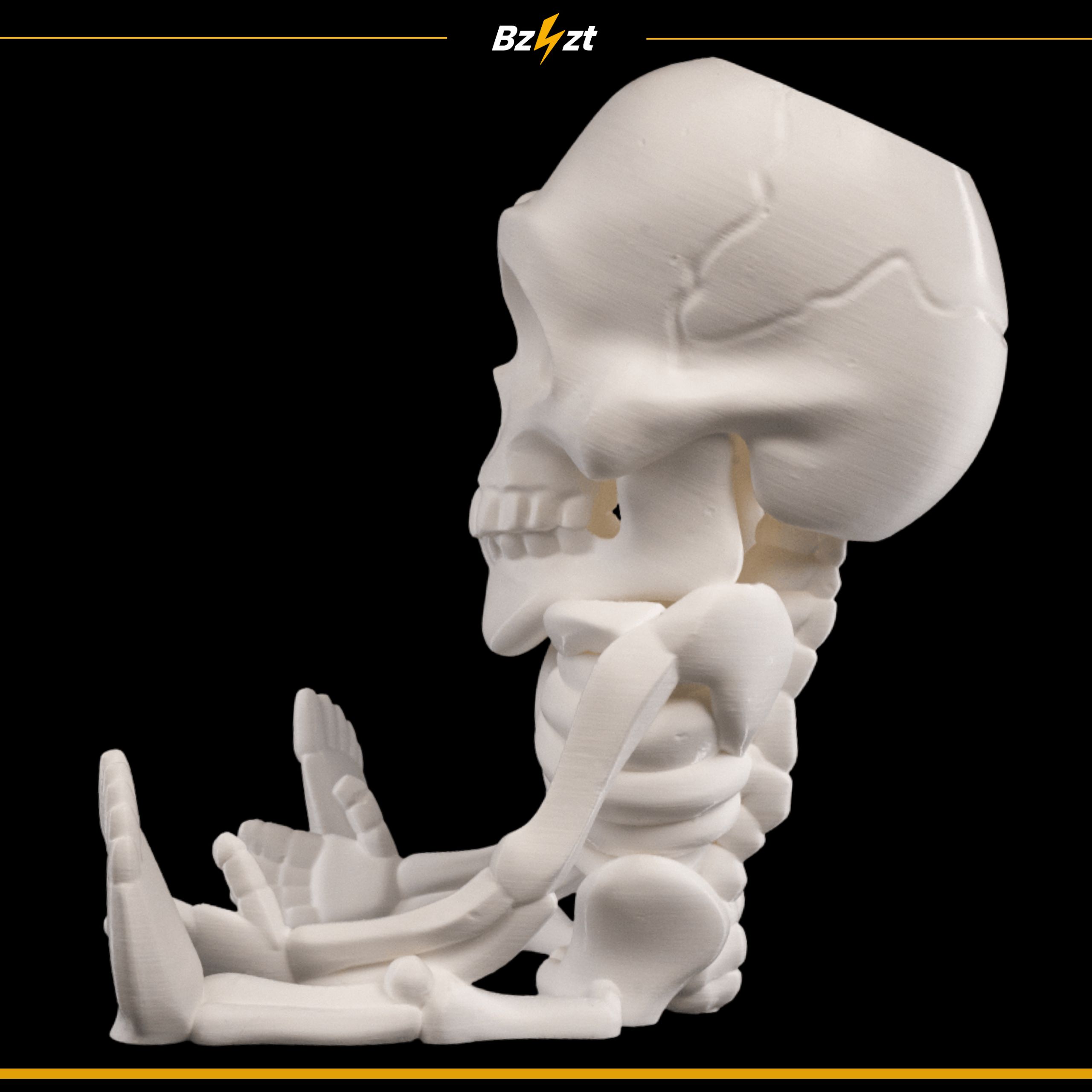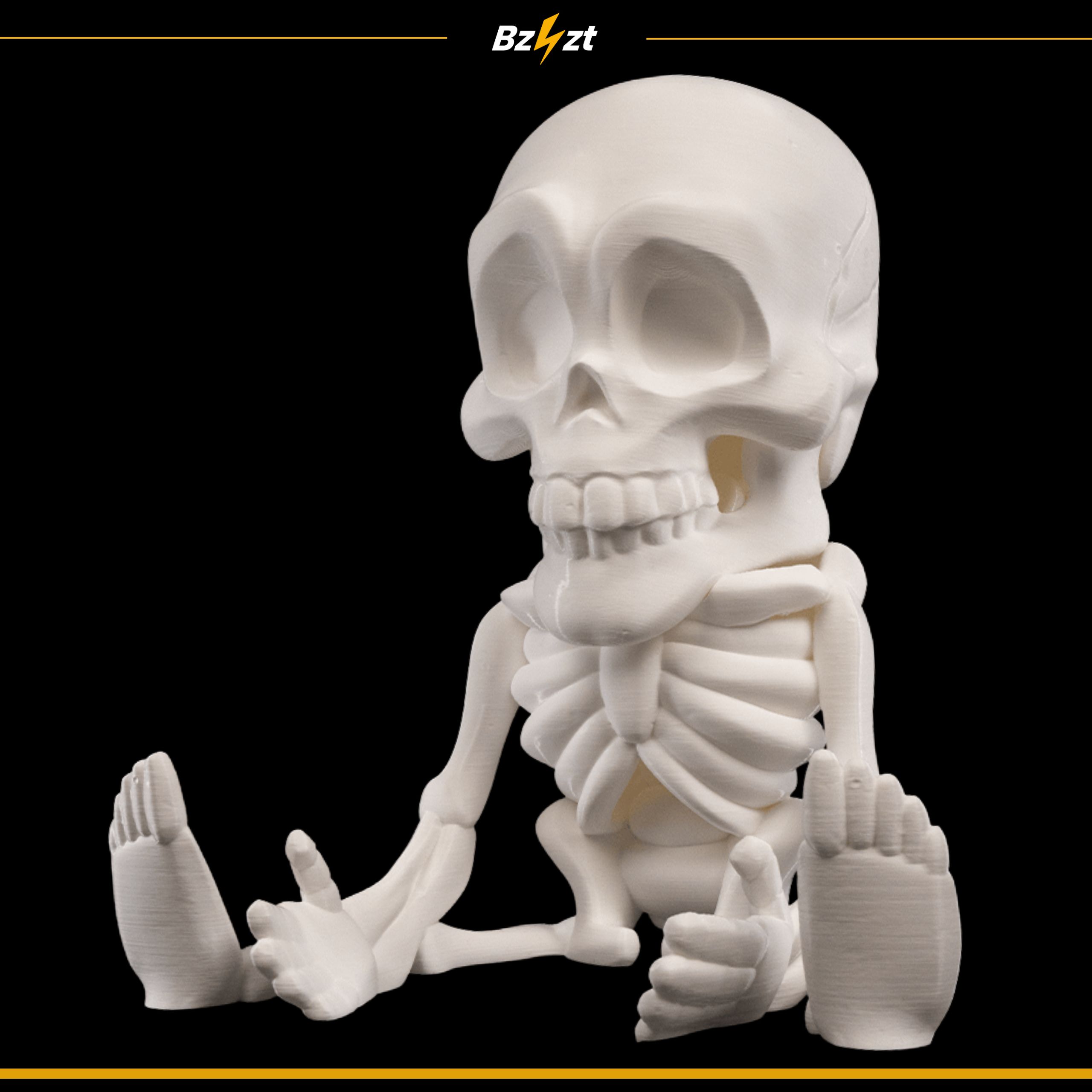 - Halloweenowy design – szkielet w unikalnej pozycji siedzącej.