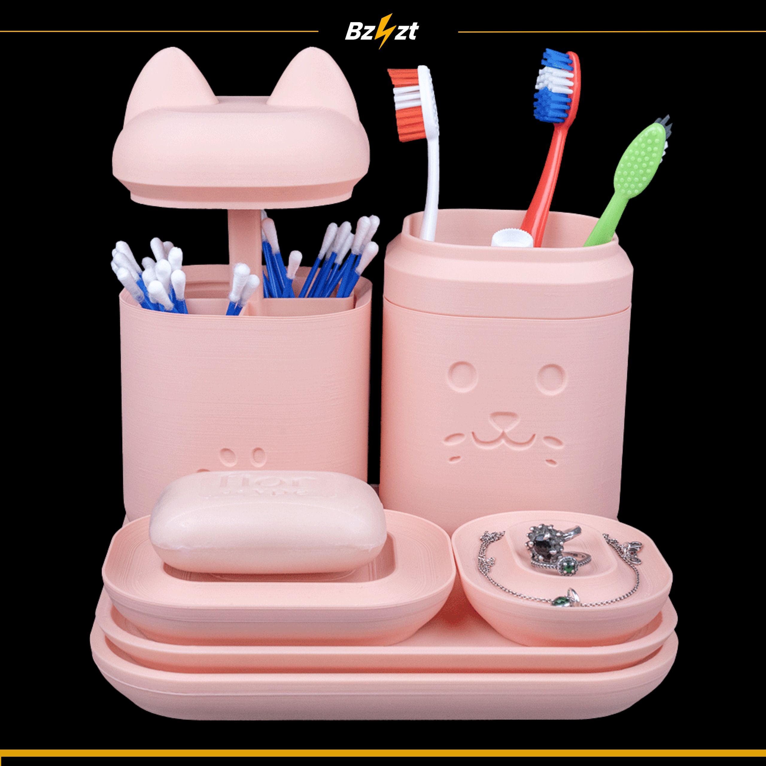 Zestaw Łazienkowy KOT 6w1 – Organizer PREMIUM w Różowym Kolorze